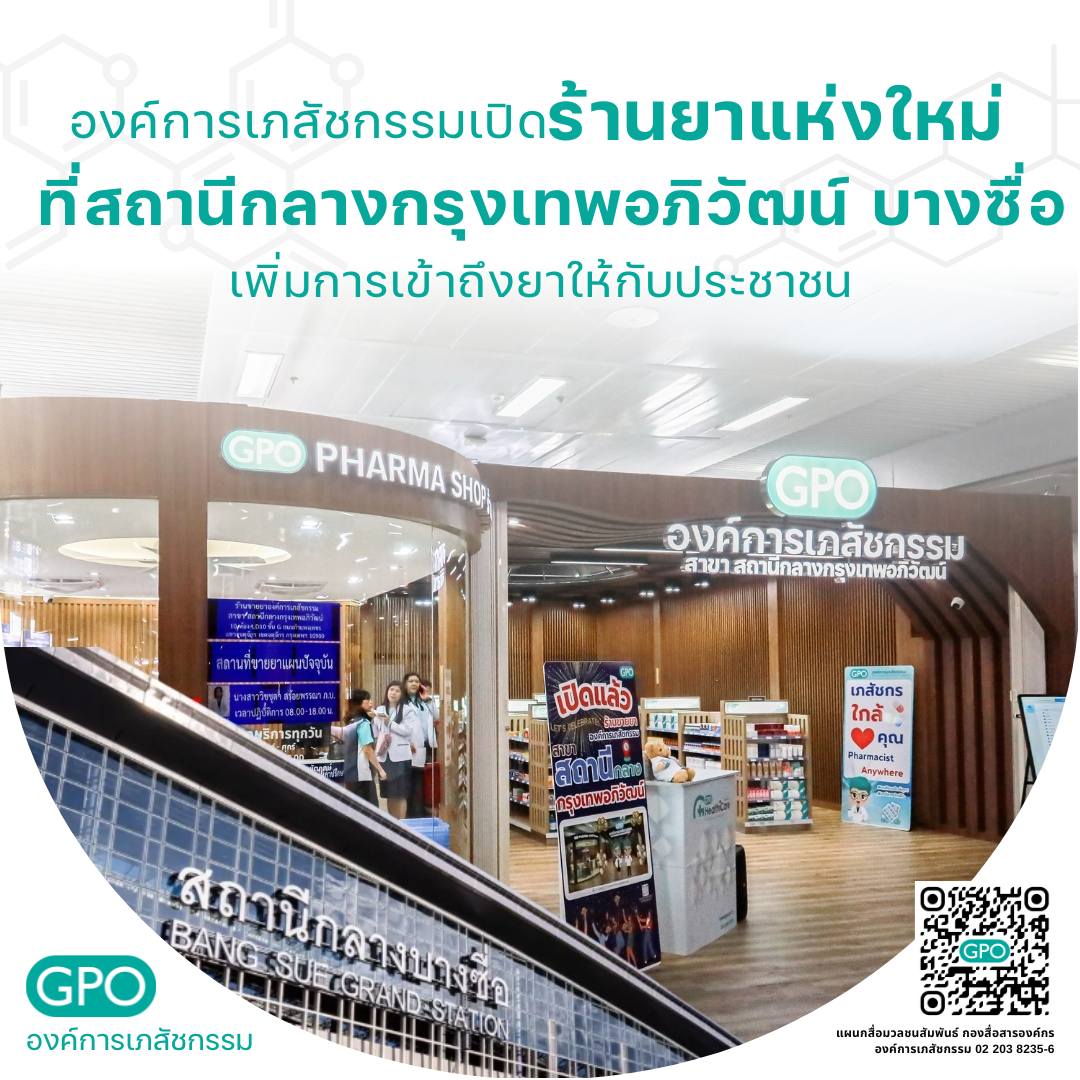 ภญ.วิลักษณ์ วังกานนท์ รองผู้อำนวยการองค์การเภสัชกรรม (อภ.) เปิดเผยว่า องค์การเภสัชกรรมได้มีการขยายบริการเพื่อเพิ่มช่องทางการจำหน่ายให้กับประชาชนทั่วไป และให้ประชาชนได้เข้าถึงยามากขึ้น โดยร้านยาดังกล่าว ตั้งอยู่ที่สถานีกลางกรุงเทพอภิวัฒน์ ตั้งอยู่ที่ชั้น G ประตู 5 ด้านหน้าห้องปฐมพยาบาล อาคารสถานีกลางกรุงเทพอภิวัฒน์ จุดเชื่อมต่อระบบรถไฟฟ้าหลายสาย ทำให้ลูกค้าสามารถเดินทางใช้บริการได้อย่างสะดวกสบาย ไม่ว่าจะเป็นการเดินทางด้วยรถไฟฟ้า BTS, MRT หรือ Airport Rail Link โดยเปิดให้บริการทุกวัน วันจันทร์ - ศุกร์ เวลา 08.00 น. - 18.00 น. วันเสาร์ - อาทิตย์ และวันหยุดนักขัตฤกษ์ เวลา 08.00 น. - 16.00 น.