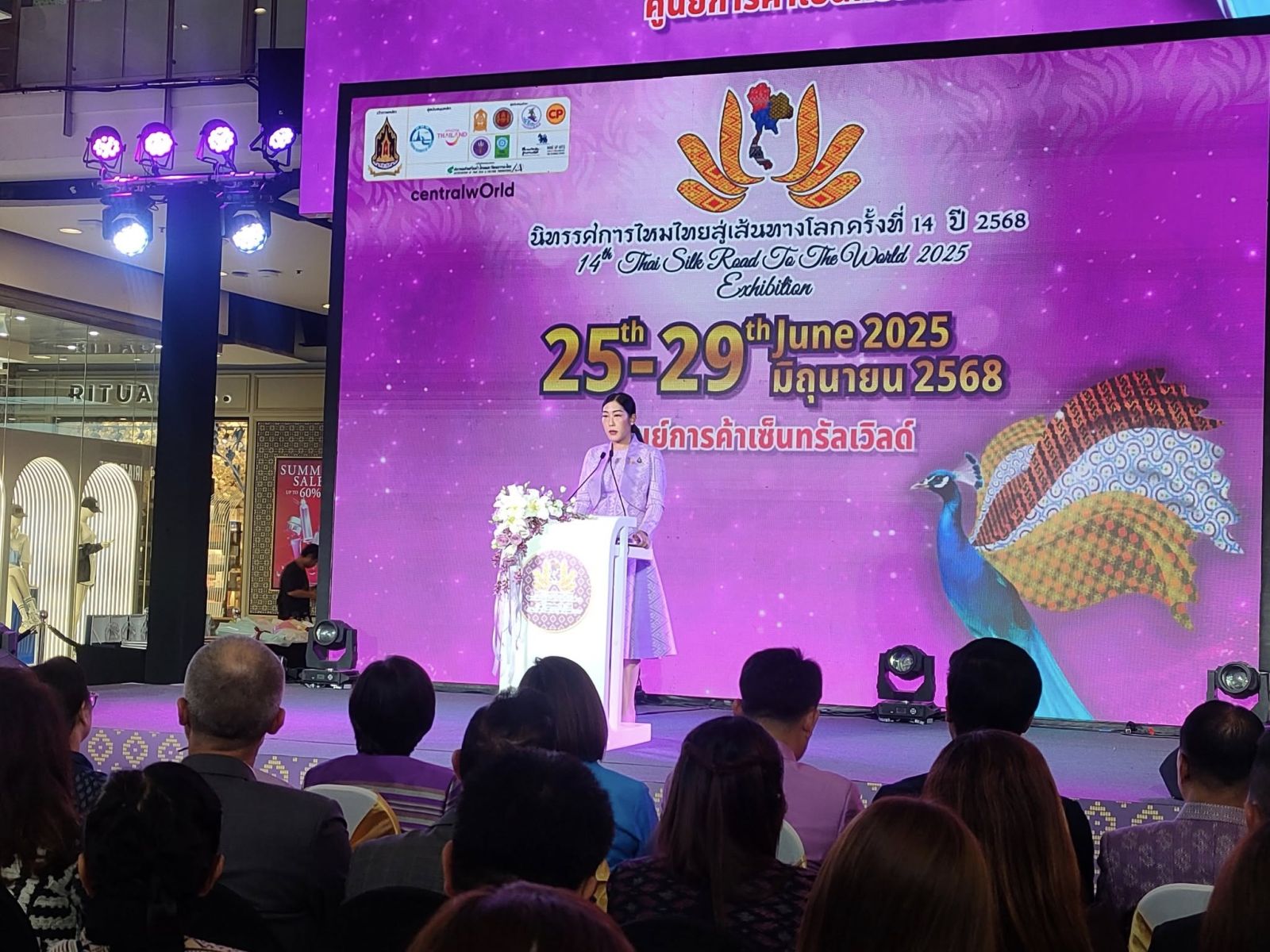 พร้อมเปิดโอกาสให้ผู้สนใจทั้งชาวไทยและต่างชาติได้สัมผัสกับเสน่ห์ของผ้าไหมอย่างใกล้ชิด ผ่านนิทรรศการชุดผ้าไหม ที่นิสิต นักศึกษา จากสถาบันต่าง ๆ ทั่วประเทศ ออกแบบและตัดเย็บให้เอกอัครราชทูตและคู่สมรส และผู้แทนสถานทูต จาก 88 ประเทศ รวม 175 ชุด นอกจากนี้ภายในงานยังมีการออกร้านจำหน่ายผลิตภัณฑ์ผ้าไหมจาก 4 ภูมิภาค กว่า 30 ร้านค้า ให้ผู้สนใจได้เลือกชมและอุดหนุนสินค้าจากชุมชน ในวันที่ 25 - 29 มิถุนายน 2568 ณ ลาน Eden ศูนย์การค้าเซ็นทรัลเวิลด์