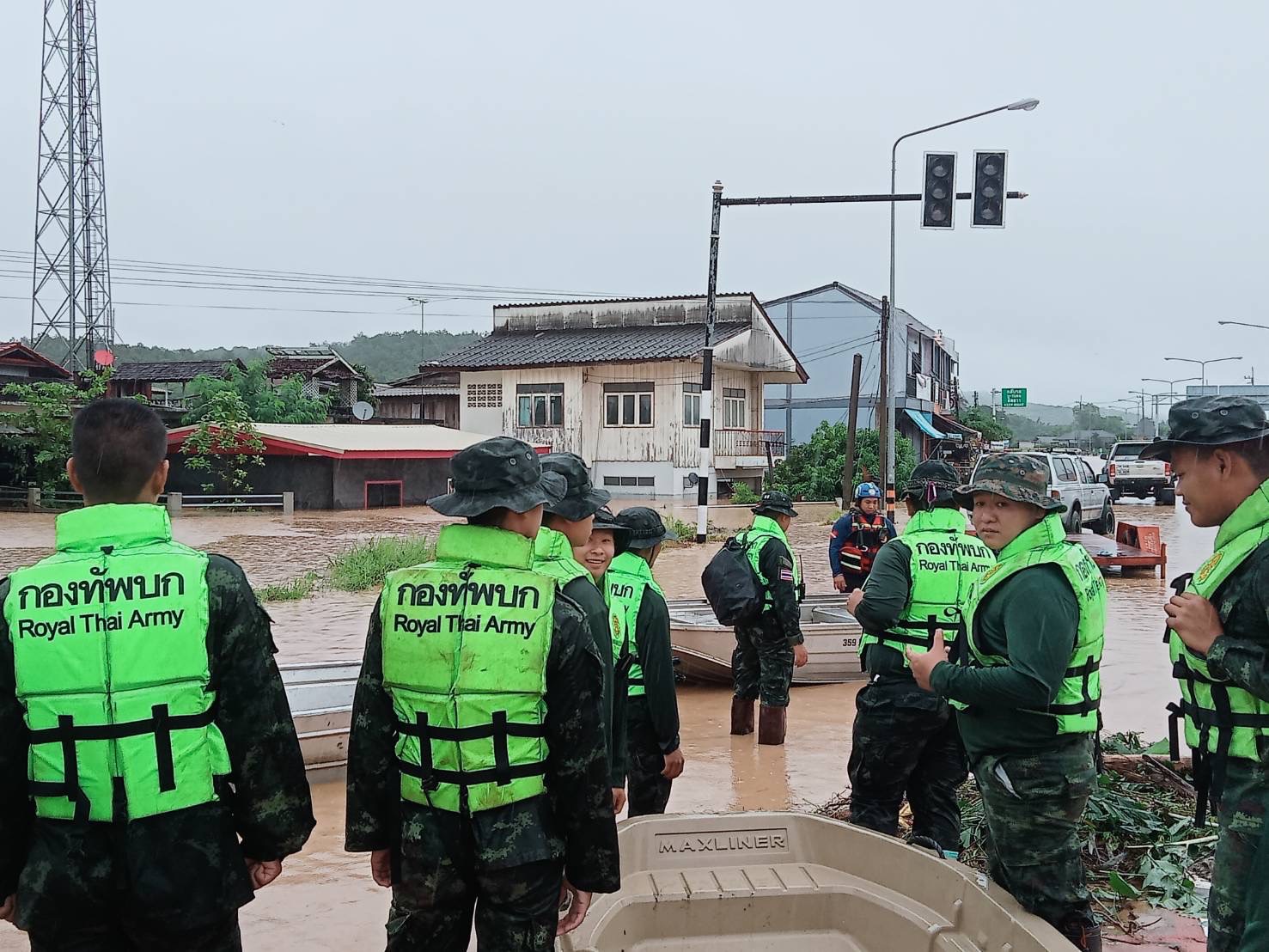 กองทัพบก โดยศูนย์บรรเทาสาธารณภัย มณฑลทหารบกที่ 37 ได้จัดกำลังพลชุดบรรเทาสาธารณภัย ชุดแพทย์เดินเท้า และสารวัตรทหาร พร้อมด้วยเรือท้องแบนติดเครื่องยนต์ รถบรรทุกทหาร FTS ยานพาหนะ และเครื่องมือบรรเทาสาธารณภัย ลงพื้นที่อย่างเร่งด่วน เพื่อบูรณาการการช่วยเหลือกับส่วนราชการจังหวัดเชียงราย สำนักงานป้องกันและบรรเทาสาธารณภัยจังหวัดเชียงราย และหน่วยงานที่เกี่ยวข้อง เจ้าหน้าที่ได้เร่งดำเนินการให้ความช่วยเหลือประชาชนในพื้นที่ประสบภัย โดยเน้นการอพยพกลุ่มผู้ป่วย ผู้สูงอายุ เด็กเล็ก และผู้ที่อยู่ในภาวะเปราะบางออกจากพื้นที่เสี่ยงไปยังจุดที่ปลอดภัย พร้อมทั้งจัดเจ้าหน้าที่และยานพาหนะอำนวยความสะดวกด้านการเดินทางให้กับประชาชนในพื้นที่ที่ถนนถูกตัดขาดจากน้ำท่วม นอกจากนี้ ยังได้จัดให้มีบริการปฐมพยาบาลและดูแลสุขภาพขั้นต้นแก่ผู้ประสบภัยอย่างใกล้ชิด พร้อมสนับสนุนการสำรวจพื้นที่ที่ได้รับผลกระทบ เพื่อจัดลำดับความจำเป็นในการให้ความช่วยเหลืออย่างเร่งด่วนและครอบคลุมต่อไป