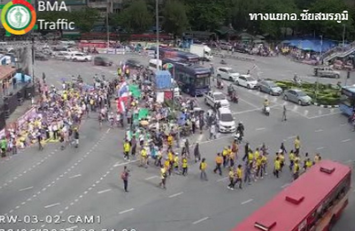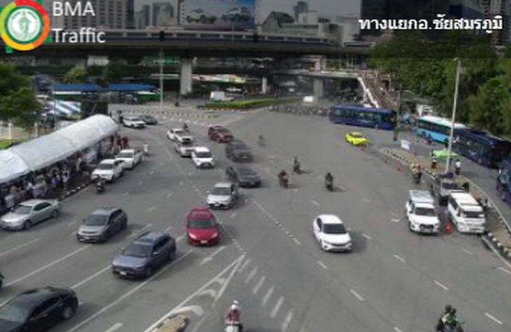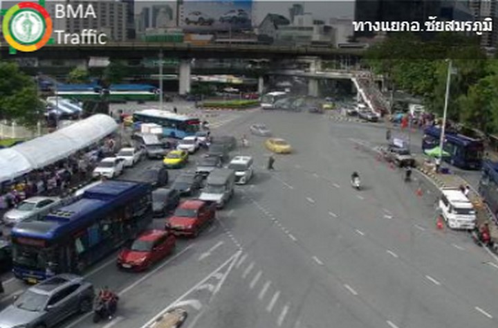 08.50 น. (28 มิ.ย.68) ผู้ชุมนุม เริ่มทยอยเข้าพื้นที่บริเวณวงเวียนอนุสาวรีย์ชัยสมรภูมิ เวลานี้ รถที่มาจากทางถนนพหลโยธิน เข้าวงเวียนอนุสาวรีย์ชัยฯ เริ่มติดขัดแล้ว