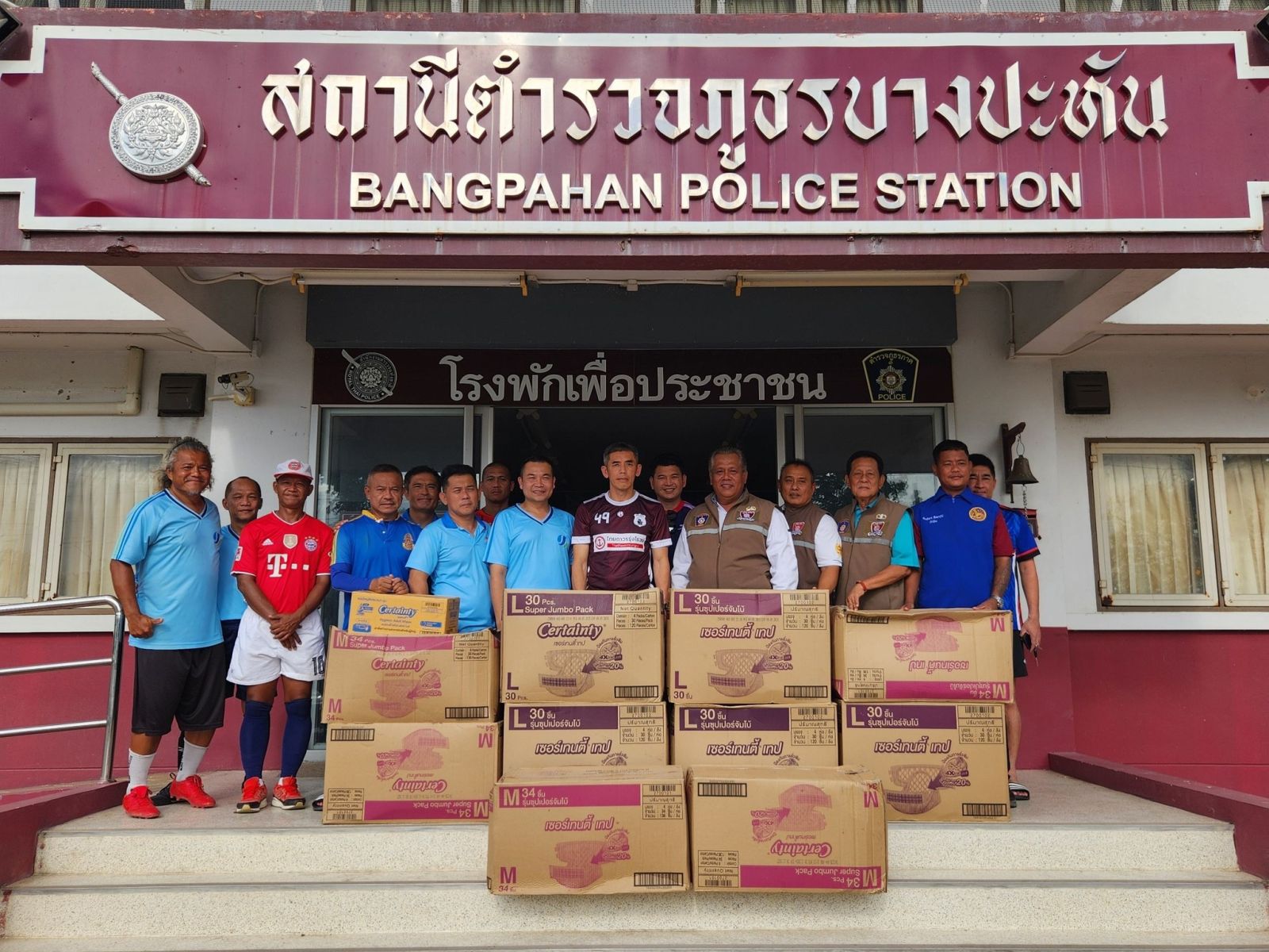 ด้าน พ.ต.อ.รัฐธนนท์ เอกฐิติกุลพัทธ์ ผกก.สน.ทองหล่อ ในฐานะตัวแทนชมรมฟุตบอลศิษย์เก่า ภปร. ราชวิทยาลัย เปิดเผยว่าพี่ๆน้องๆและเพื่อนๆ ในชมรมฟุตบอล ภปร. ได้ร่วมกันรวบรวมกำลังทรัพย์ กำลังกายและกำลังใจ เดินทางมาร่วมทำบุญในครั้งนี้ ซึ่งได้รวบรวมเงินจำนวนเกือบ 2 หมื่นบาท จัดซื้อผ้าอ้อมผู้ใหญ่ กว่า 10 ลัง มามอบให้กับกำนันและก.ตร.ในพื้นที่สภ.บางปะหัน เพื่อนำไปมอบให้ผู้สูงอายุที่เป็นผู้ป่วยติดเตียง พร้อมกันนึ้ทางชมรมฟุตบอลภปร.ราชวิทยาลัย รู้สึกภูมิใจ ที่ได้เป็นส่วนหนึ่งในการช่วยเหลือผู้ป่วยติดเตียงและช่วยเหลือสังคม
