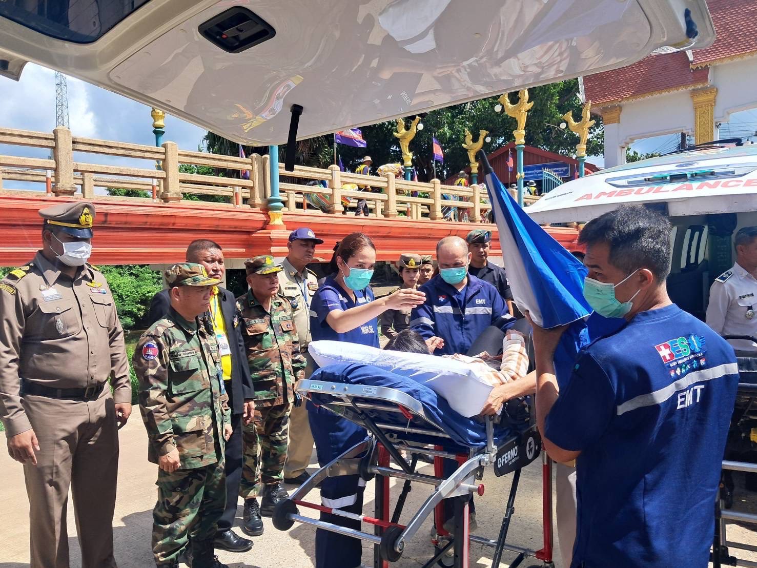 เมื่อวันที่ 29 มิถุนายน 2568 เวลา 10.00 น. ณ จุดผ่านแดนถาวรบ้านแหลม ตำบลเทพนิมิต อำเภอโป่งน้ำร้อน จังหวัดจันทบุรี กองบัญชาการป้องกันชายแดนจันทบุรีและตราด (กปช.จต.) โดยสำนักงานประสานงานชายแดนไทย-กัมพูชา ได้ปฏิบัติภารกิจด้านมนุษยธรรม เปิดด่านฉุกเฉินอำนวยความสะดวกแก่ผู้ป่วยฉุกเฉินชาวกัมพูชา เดินทางเข้าสู่ประเทศไทยเพื่อรับการรักษาพยาบาลอย่างเร่งด่วน