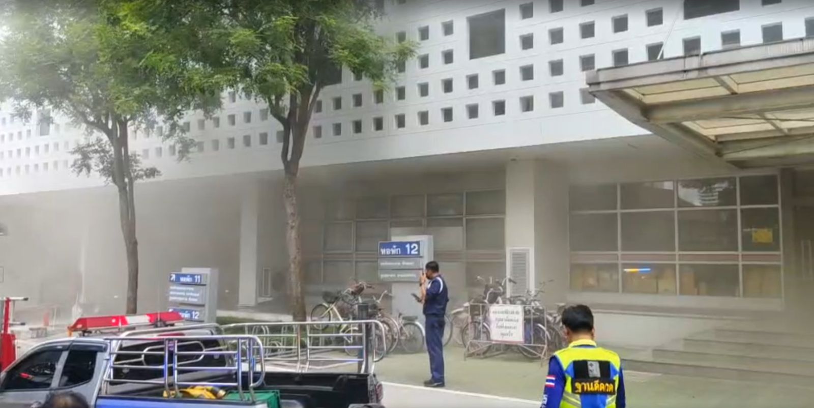 ต่อมาเวลา 12.55 น. เหตุเพลิงไหม้ภายในหอพักพยาบาล (แปดไร่) โรงพยาบาลศิริราช พบจุดต้นเพลิงบริเวณชั้นใต้ดิน เจ้าหน้าที่อยู่ระหว่างดำเนินการใช้น้ำ