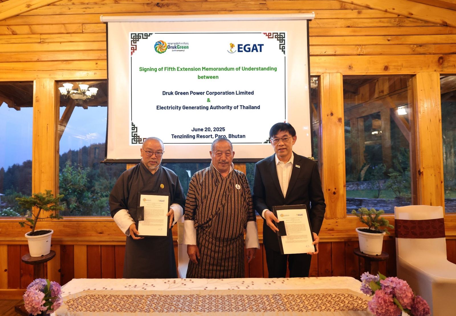นอกจากนี้ กฟผ. และ DGPC ได้ร่วมลงนามต่ออายุบันทึกความเข้าใจ (MOU) ด้านเทคนิควิชาการพลังน้ำ ซึ่งเป็นการต่ออายุครั้งที่ 5 เพื่อแลกเปลี่ยนองค์ความรู้และประสบการณ์ด้านพลังน้ำซึ่งเป็นทรัพยากรหลักของภูฏาน ทั้งการฝึกอบรมเพิ่มศักยภาพและแลกเปลี่ยนบุคลากรเพื่อยกระดับประสิทธิภาพการดำเนินงานของทั้งสองประเทศและเสริมสร้างความมั่นคงด้านพลังงานในระยะยาว