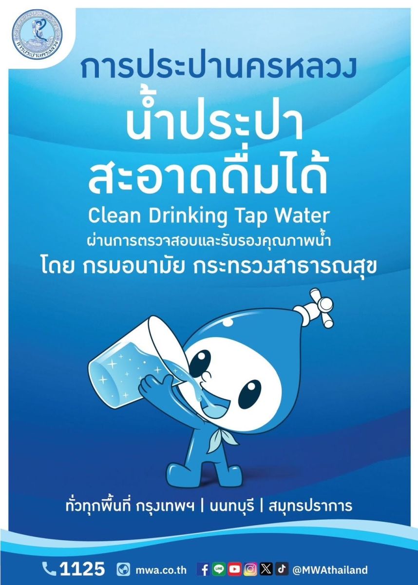 นางสาวสุวรา ทวิชศรี ผู้ว่าการการประปานครหลวง (กปน.) เปิดเผยว่า จากการที่ กปน. ได้ร่วมมือกับกรมอนามัย ดำเนินการตรวจสอบคุณภาพน้ำประปาในทุกพื้นที่ให้บริการของ กปน. ได้แก่ กรุงเทพมหานคร นนทบุรี และสมุทรปราการ โดยสุ่มเก็บตัวอย่างน้ำประปา 2 ครั้ง ๆ ละ 217 แห่ง ตั้งแต่ต้นทางที่โรงงานผลิตน้ำ กลางทางที่สถานีสูบจ่ายน้ำ และปลายทางที่สถานที่ของผู้ใช้น้ำ ตามแนวทางการรับรองคุณภาพน้ำประปาดื่มได้ กรมอนามัย สำหรับการประปานครหลวง พ.ศ. 2567 ซึ่งผลวิเคราะห์คุณภาพน้ำจากกองห้องปฏิบัติการสาธารณสุข กรมอนามัยทั้ง 2 ครั้ง ผ่านเกณฑ์มาตรฐานน้ำประปาดื่มได้กรมอนามัย ปี พ.ศ. 2563 กรมอนามัยจึงออกเกียรติบัตรรับรองคุณภาพน้ำประปาดื่มได้ให้กับ กปน. เป็นที่เรียบร้อยแล้ว ตั้งแต่วันที่ 16 มิถุนายน 2568