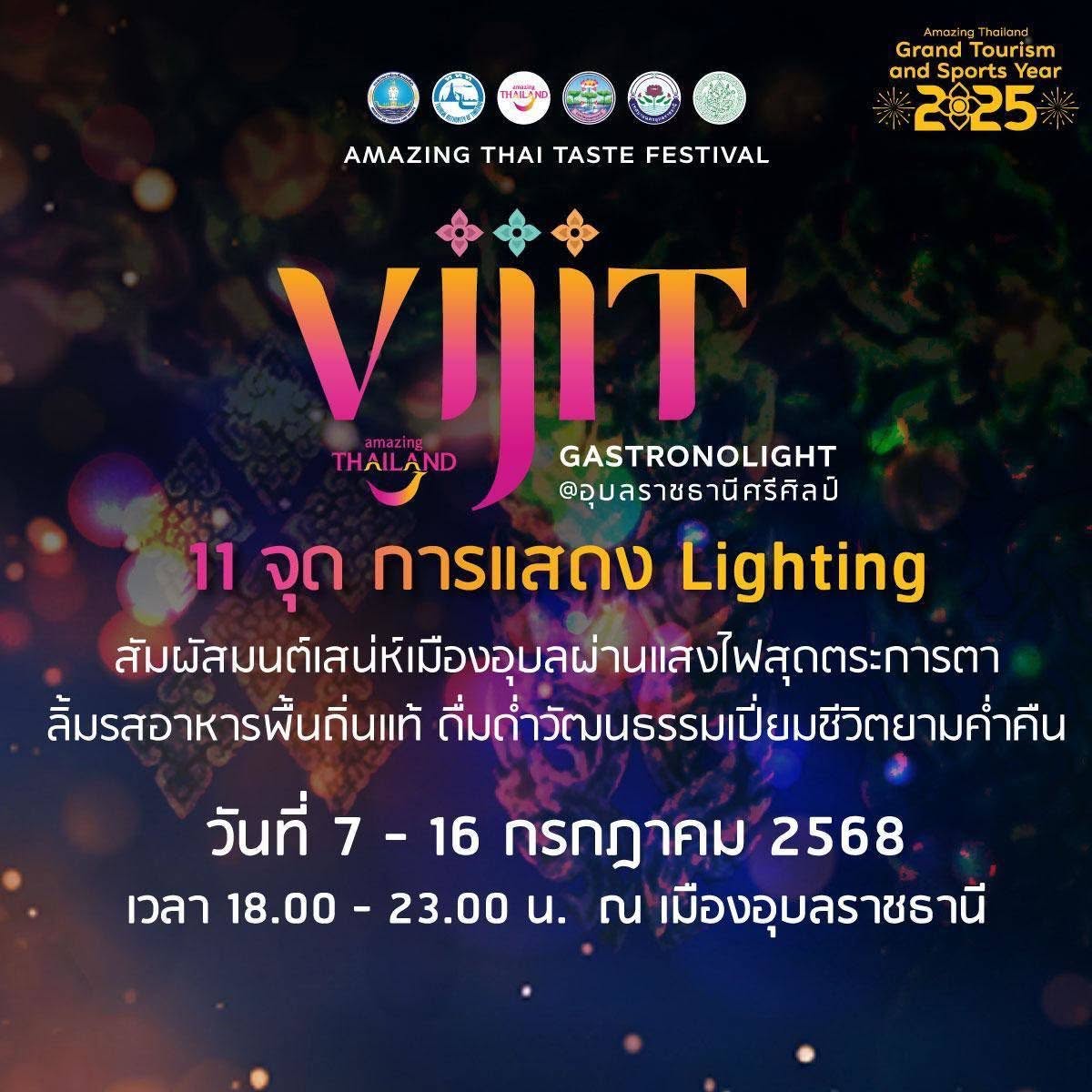 เปิดประสบการณ์ท่องเที่ยวไทยไปกับงาน VIJIT GASTRONOLIGHT @อุบลราชธานีศรีศิลป์ จากแสงแห่งศรัทธา สู่ศิลป์แห่งชีวิต สร้างประสบการณ์การท่องเที่ยวเชิงอาหารยามค่ำคืนที่วิจิตรตระการตา