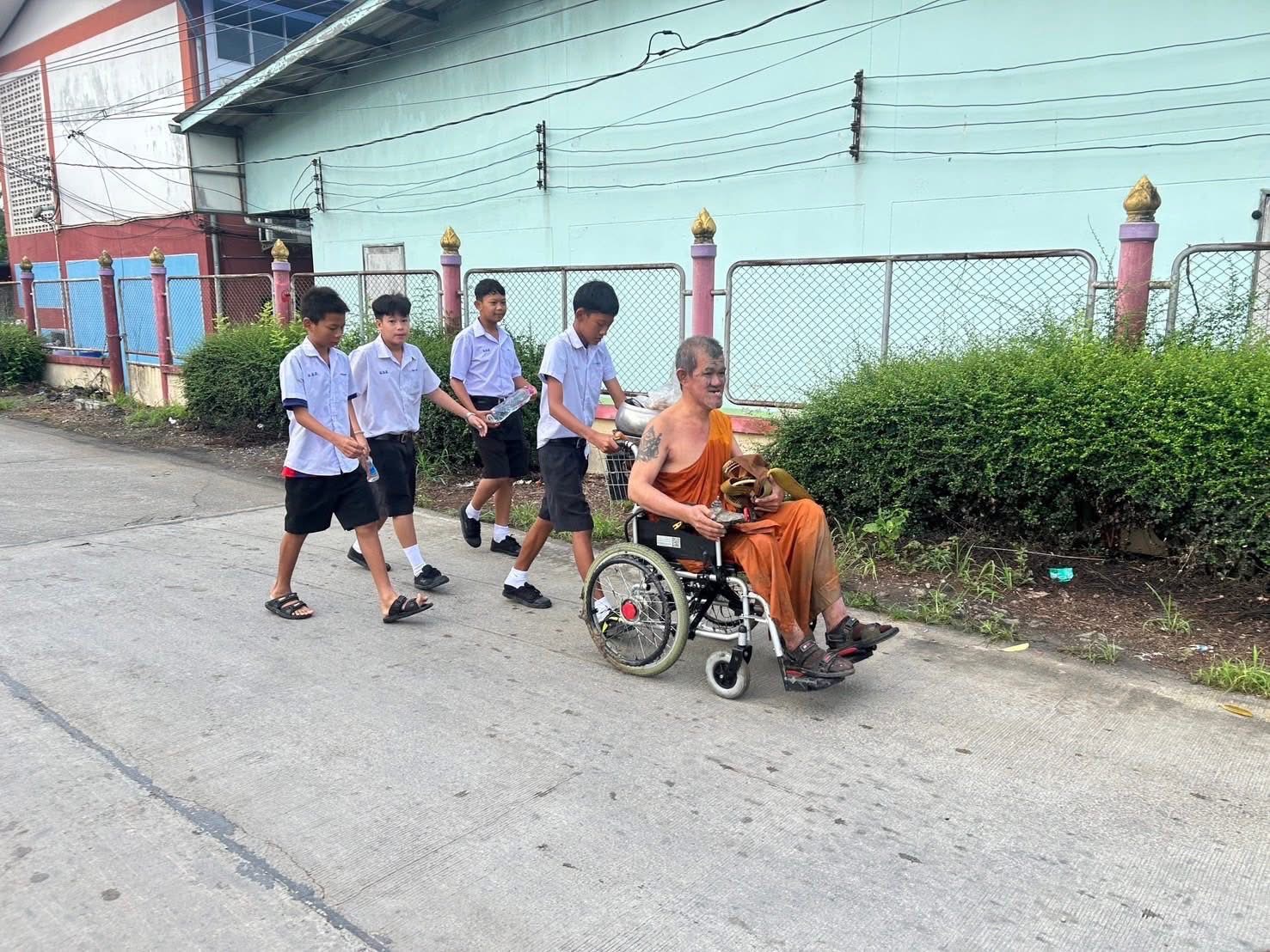 ชื่นชมนักเรียนและพลเมืองดี ช่วยหลวงตานั่งวีลแชร์ออกบิณฑบาต รถพลิกคว่ำตกลงคลอง จ.นนทบุรี
