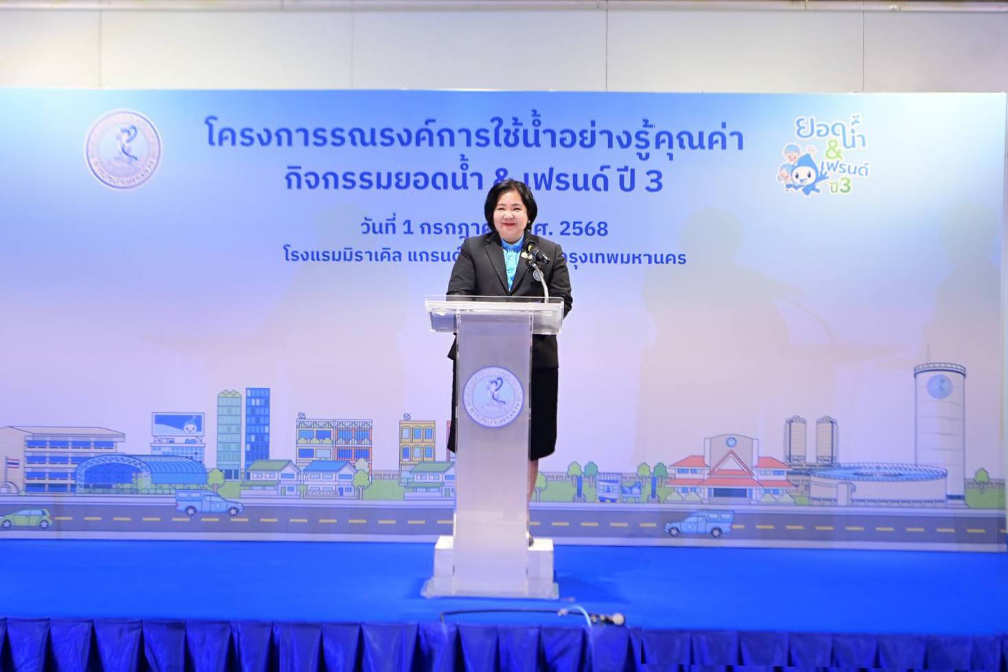 เมื่อวันที่ 1 กรกฎาคม พ.ศ. 2568 เวลา 09.00 น. ณ ห้องจูปิเตอร์ ชั้น 3 โรงแรมมิราเคิล แกรนด์ คอนเวนชั่น กรุงเทพมหานคร นางสาวสุวรา ทวิชศรี ผู้ว่าการการประปานครหลวง (กปน.) เป็นประธานในพิธีเปิดโครงการรณรงค์การใช้น้ำอย่างรู้คุณค่า ภายใต้ชื่อกิจกรรม “ยอดน้ำ & เฟรนด์” ปี 3 พร้อมคณะผู้บริหาร กปน. คณะอาจารย์และนักเรียนจาก 15 โรงเรียนในพื้นที่กรุงเทพมหานคร นนทบุรี และสมุทรปราการ เข้าร่วมพิธี