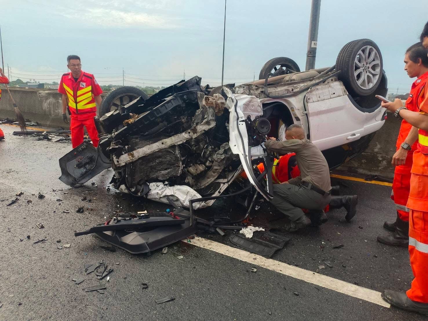 เมื่อเวลา 06.00 น.วันที่ 3 ก.ค.68 ตำรวจ สน.ทางด่วน 1 รับแจ้งเหตุรถยนต์ 2 คันชนกันพลิกคว่ำ บนทางด่วนฉลองรัช ช่วงทางลงมุ่งหน้าท้ายซอยจตุโชติ แขวงและเขตสายไหม กทม. จึงรุดไปตรวจสอบพร้อมด้วยหน่วยกู้ภัยทางด่วน อาสาสมัครมูลนิธิร่วมกตัญญู และ อปพร.เขตสายไหม