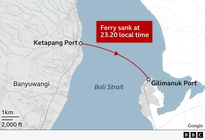 ช่วงค่ำของคืนวันที่ 3 กรกฎาคม 2568 เรือเฟอร์รีที่มีผู้โดยสารและลูกเรือรวม 65 คนล่มใกล้กับเกาะบาหลี ประเทศอินโดนีเซีย