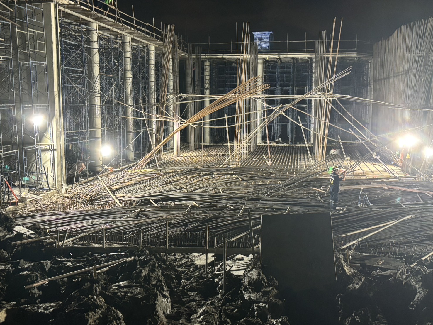 เวลา 20.16 น. เบื้องต้นเป็นอาคารอยู่ระหว่างก่อสร้าง 2 ชั้น โครงเหล็กทรุดตัวจากชั้นที่ 2 สอบถามจากผู้ควบคุมงานยืนยัน มีคนงานอยู่ระหว่างปฏิบัติงานในที่เกิดเหตุจำนวน 160 ราย ยืนยันยอดจำนวนคน ขณะนี้ออกมาอยู่ภายนอกอาคารครบตามจำนวนที่ผู้ควบคุมงานแจ้ง ไม่มีผู้ติดค้างภายใน ในที่เกิดเหตุมีผู้ได้รับบาดเจ็บ จำนวน 12-13 ราย และอาสาสมัครนำส่งโรงพยาบาลเป็นที่เรียบร้อย อาสาสมัครนำส่งโรงพยาบาลนวมินทร์ 9 เป็นเพศชายจำนวน 5 ราย เพศหญิงจำนวน 3 ราย และนำส่งโรงพยาบาลนวมินทร์ 1 เป็นเพศชายจำนวน 4 ราย รายละเอียดเพิ่มเติมอยู่ระหว่างการตรวจสอบ