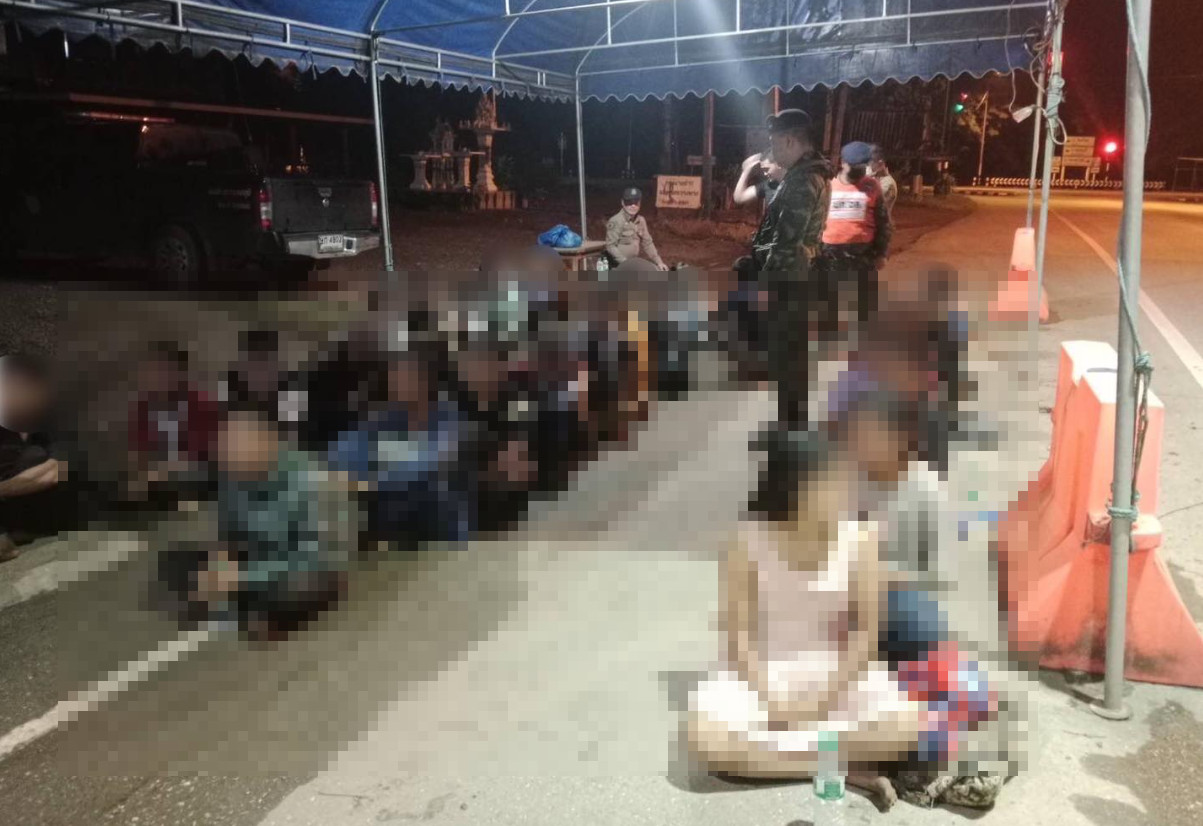กระทั่ง 01.00 น. ขณะที่เจ้าหน้าที่ปฏิบัติงาน บริเวณ จุดตรวจร่วมสามแยกทองผาภูมิ สังเกตพบรถยนต์ต้องสงสัยตามที่ได้รับแจ้งจากแหล่งข่าว ขับมาจาก อ.สังขละบุรี มุ่งหน้า อ.ทองผาภูมิ จึงได้ให้สัญญาณหยุดรถเพื่อทำการตรวจสอบ แต่ในขณะที่เจ้าหน้าที่กำลังจะเข้าทำการตรวจสอบนั้น รถยนต์คันดังกล่าวได้ทำการเร่งเครื่องยนต์หลบหนีออกไปจากด่านตรวจ เจ้าหน้าที่จึงได้เร่งติดตามไปจนกระทั่งพบรถยนต์กระบะ หมายเลขทะเบียน 2ฒผ 2929 กรุงเทพมหานคร จอดทิ้งไว้บริเวณริมถนน บ.สหกรณ์นิคม ม.1 ต.สหกรณ์นิคม อ.ทองผาภูมิ จากนั้นเจ้าหน้าที่ฝ่ายความมั่นคงจึงได้ทำการตรวจสอบภายในรถยนต์คันดังกล่าวอย่างละเอียด พบ กลุ่มบุคคลคล้ายต่างด้าวผิดกฎหมาย จำนวน 27 คน (ชาย 19 คน และหญิง 8 คน) ต่อมาเจ้าหน้าที่ได้ดำเนินการตรวจสอบเอกสารประจำตัวที่ทางราชการออกให้ แต่กลุ่มบุคคลดังกล่าวไม่สามารถสื่อสารภาษาไทยได้ และไม่สามารถแสดงเอกสารที่ทางราชการออกให้ได้ จึงควบคุมตัวกลุ่มบุคคลต่างด้าวไว้ทั้งหมด