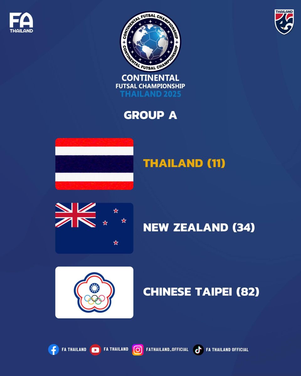 ฟุตซอลชายไทย อยู่ร่วมสาย นิวซีแลนด์ และ ไชนีส ไทเป ศึก คอนติเนนตัล ฟุตซอล แชมเปี้ยนชิพ 2025