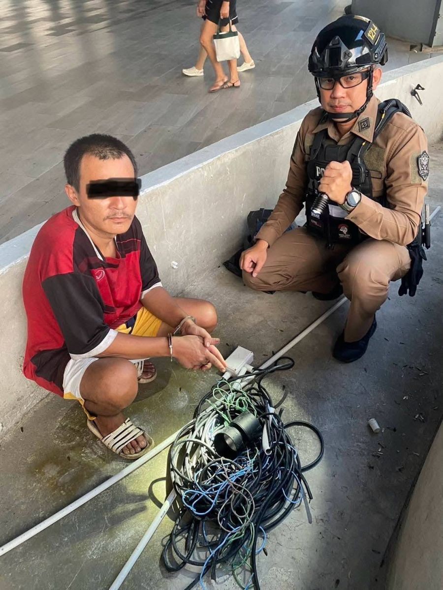 8 ก.ค. 68 นายเอกวรัญญู อัมระปาล โฆษกของกรุงเทพมหานคร เปิดเผยถึงการจับกุมผู้ลักลอบตัดสายไฟบน Skywalk บริเวณสามแยกบางกะปิ ว่า เมื่อวันที่ 6 ก.ค. 68 เวลาประมาณ 17.00 น. เจ้าพนักงานตำรวจชุดจับกุมได้รับแจ้งเหตุจากพลเมืองดี ว่ามีคนร้ายกำลังลักลอบตัดสายไฟบน Skywalk บริเวณสามแยกบางกะปิ จึงเดินทางไปตรวจสอบที่เกิดเหตุ พบ นายดวง (นามสมมุติ) ผู้ต้องหาอยู่บริเวณจุดที่ได้รับแจ้ง เป็นบุคคลต้องสงสัยตามที่รับแจ้ง จึงได้ทำการตรวจค้น พบโคมไฟแบบกลมสีดำ ยี่ห้อ SYLVANIA จำนวน 1 ดวง ฉนวนเปลือกนอกหุ้มสายไฟ PVC สีดำ ขนาด 2 x 2.5/2.5 ความยาวประมาณ 4 เมตร จำนวน 6 เส้น ฉนวนสายไฟสีฟ้า ขนาด 2 มม. ความยาวประมาณ 3.2 เมตร จำนวน 1 เส้น ฉนวนสายไฟสีน้ำตาล ขนาด 2 มม. ความยาวประมาณ 6.8 เมตร จำนวน 2 เส้น และฉนวนสายไฟสีเขียว ขนาด 2 มม. ความยาวประมาณ 6.8 เมตร จำนวน 2 เส้น ซุกซ่อนอยู่ในถุงขยะสีดำ