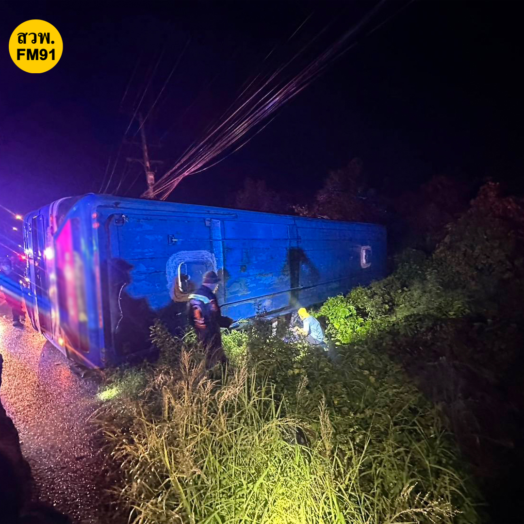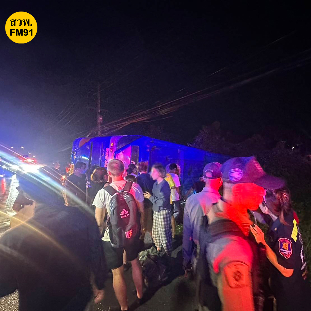 ตรวจสอบแล้วเป็นรถบัสโดยสารกรุงเทพฯ-ภูเก็ต เสียหลักตกข้างทางพลิกตะแคง เบื้องต้นมีผู้ได้รับบาดเจ็บ 8 ราย