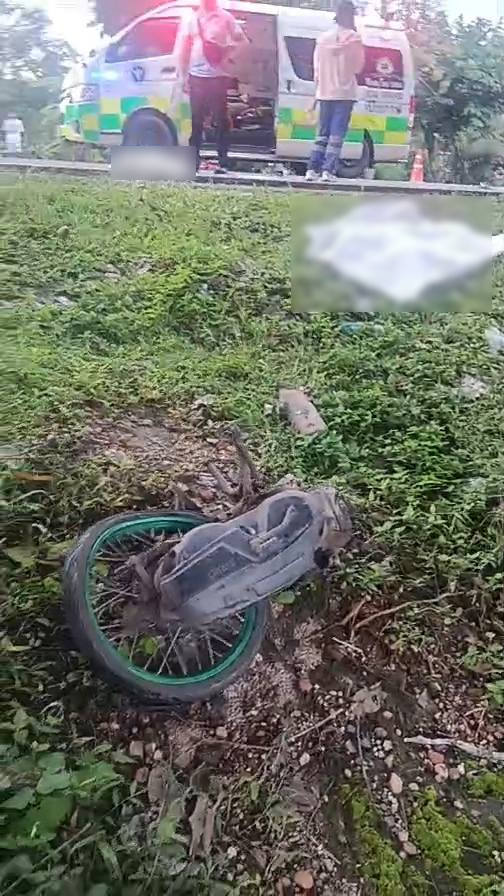 รถนั่งส่วนบุคคลชนกับรถจักรยานยนต์ พบร่างแม่-ลูกเสียชีวิตกลางถนนชยางกูร จ.บึงกาฬ