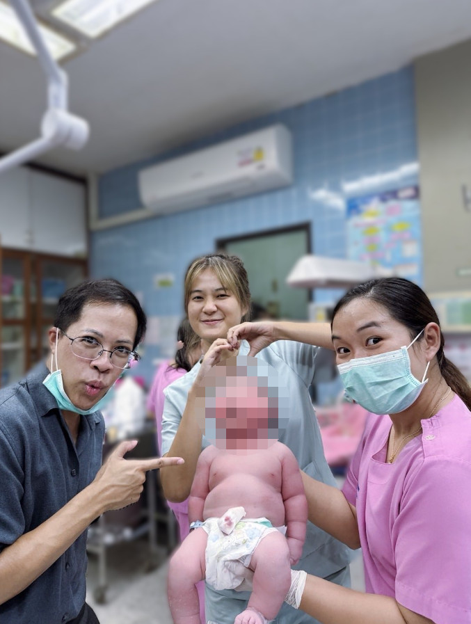 แพทย์หญิงณัฎฐณิชา เขียวณรงค์ สูติ-นรีแพทย์ประจำโรงพยาบาลท่าสองยาง ซึ่งกล่าวว่า หนูน้อยรายนี้มีน้ำหนักตัวมากผิดปกติ (Macrosomia) ทำให้การคลอดมีความเสี่ยงสูง คุณแม่มีภาวะเกิบตกเลือดหลังคลอด ส่วนลูกเกิดภาวะน้ำตาลในเลือดต่ำ(Hypoglycemia) ภายหลังต้องเข้าห้อง NICU ทันที" แม้จะเป็นเคสที่ท้าทาย แต่ด้วยความทุ่มเทของทีมแพทย์ พยาบาล และเจ้าหน้าที่ ทำให้แม่และลูกปลอดภัยภายใต้การดูแลอย่างใกล้ชิด