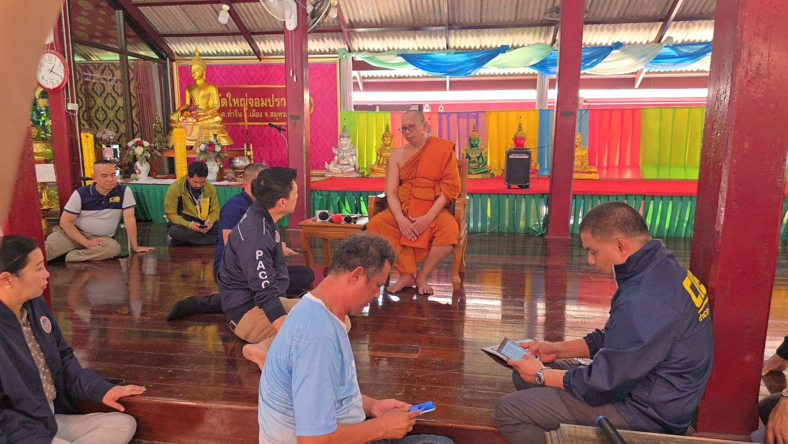 เมื่อเวลา 13.00 น. ของวันที่ 13 กรกฎาคม 2568 ที่วัดใหญ่จอมปราสาท ต.ท่าจีน อ.เมืองฯ จ.สมุทรสาคร พล.ต.ต.ประสงค์ เฉลิมพันธ์ ผบก.ปปป. พร้อมด้วย พ.ต.ท.สิริพงษ์ ศรีตุลา ผู้ช่วยเลขาธิการคณะกรรมการ ป.ป.ท., นางสาวอรณิช สุขบาล ผู้อำนวยการกองปราบปรามการทุจริตในภาครัฐ 2, นายคนึง ทองเที่ยง ปลัดอาวุโสอำเภอเมืองสมุทรสาคร คณะเจ้าหน้าที่ ปปป.,ปปท, และหน่วยงานที่เกี่ยวข้อง ได้เข้าพบกับ พระครูสาครสุตกิจ เจ้าคณะตำบลท่าฉลอม เจ้าอาวาสวัดน้อยนางหงษ์ คณะพระสงฆ์(พระลูกวัด) วัดใหญ่จอมปราสาท ผู้นำชุมชน และคณะกรรมการวัด เพื่อสอบถามรายละเอียดเพิ่มเติม ที่เกี่ยวข้องกับเรื่องของระบบการเงินในวัดใหญ่จอมปราสาท การบริหารจัดการเงินวัด และรายรับ – รายจ่าย ที่ทางวัดพึงได้รับในแต่ละเดือน มีจำนวนมากน้อยเพียงใด เพื่อนำไปเป็นข้อมูลเกี่ยวกับการตรวจสอบเส้นทางการเงินของพระมหาทิวากร เจ้าอาวาสวัดใหญ่จอมปราสาท ที่มีการตรวจพบว่าได้โอนเงินกว่า 1 ล้านบาทไปให้สีกากอล์ฟ
