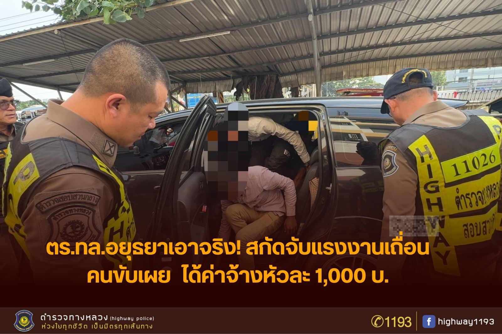 ตำรวจทางหลวงอยุธยา สกัดจับรถยนต์ต้องสงสัยบนถนนพหลโยธิน ขาเข้า พื้นที่ ต.ลำไทร อ.วังน้อย จ.พระนครศรีอยุธยา พบแรงงานต่างด้าวสัญชาติเมียนมา 11 คน (ชาย 8 หญิง 3) ไม่มีเอกสารเข้าเมือง นั่งมาในรถยนต์ ทะเบียนสมุทรสาคร
