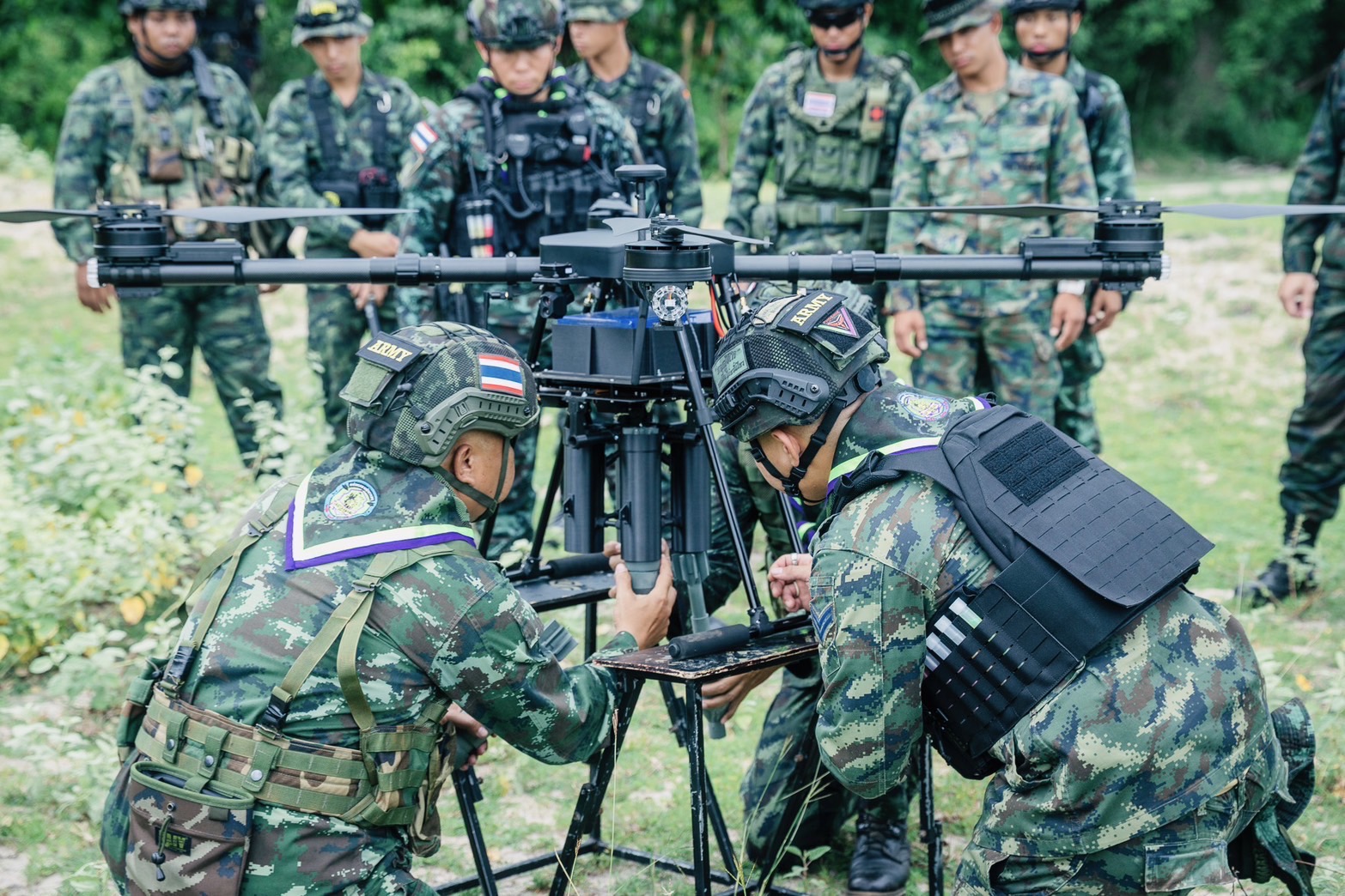 เมื่อวันที่ 14 ก.ค.68 ผู้บังคับหน่วยเฉพาะกิจราชมนู กองกำลังนเรศวร เป็นประธานในพิธีปิดการฝึกหลักสูตร ผู้บังคับอากาศยานไร้คนขับโจมตีทิ้งระเบิดทางยุทธวิธี (Unmanned Aerial System (UAS) Combat Drone Operator) รุ่นที่ 4 เพื่อเป็นการเพิ่มพูนทักษะความรู้ และพัฒนาขยายผล เสริมสร้างขีดความสามารถในการป้องกันประเทศ และดูแลความปลอดภัยให้กับพี่น้องประชาชนตามแนวชายแดน