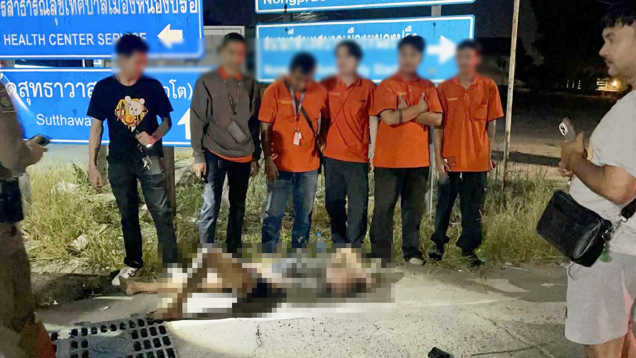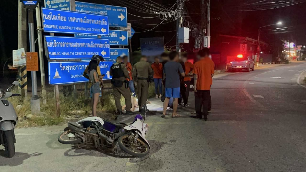 โจรขโมย จยย. บิดหนีแต่ไม่รอด รถแหกโค้งคว่ำเจ็บ เพื่อนๆ ผู้เสียหายตามมายืนเรียงถ่ายรูป จ.ชลบุรี