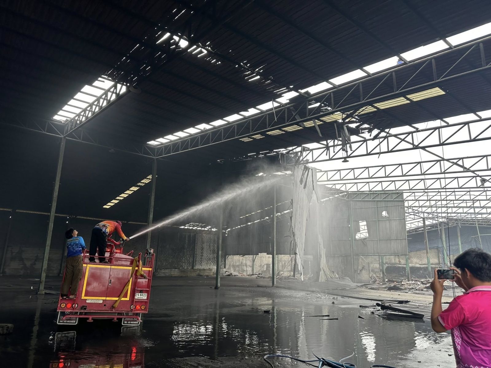เพลิงไหม้โกดัง ในโรงงานอุตสาหกรรม ในพื้นที่ อ.เมืองสมุทรสาคร เจ้าหน้าที่พร้อมรถน้ำรุดเข้าระงับเหตุทันก่อนจะลุกลาม