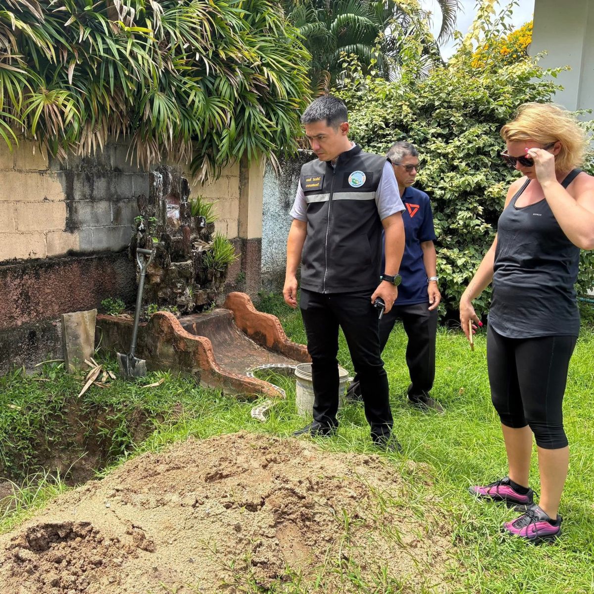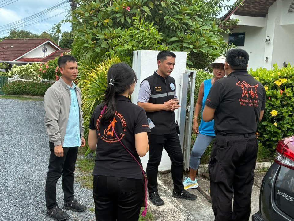 หลังจากรับแจ้ง นายเทมส์ ไกรทัศน์ นายกเทศมนตรีตำบลราไวย์ พร้อมด้วย นายขวัญชัย วัชราภิวัฒน์ รองนายกเทศมนตรี และหน่วยงานที่ข้อง เดินทางเข้าตรวจสอบ พบว่าบ้านหลังดังกล่าวเป็นบ้านเดี่ยว ของชาวต่างชาติ ซึ่งจากการตรวจสอบพบว่าเป็น ผู้ชาย ชาวฝรั่งเศส ภายในบ้านมีสุนัขอยู่ 3 ตัวเป็นพ่อแม่ลูกกัน โดยตัวที่ถูกฝัง เป็นตัวลูก ซึ่งเมื่อเจ้าหน้าที่เข้าไปถึงพบว่าถูกช่วยขึ้นมาแล้ว โดยอยู่ในสภาพอ่อนแรง