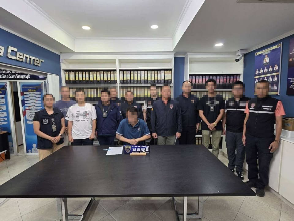เมื่อวันที่ 17 กรกฎาคม 2568 พ.ต.อ.นภัสพงษ์ โฆษิตสุริยมณี ผกก.ตม.จว.ชลบุรี พร้อมด้วย พ.ต.ท.กวิณวัชร์ อารยะสุริวงศ์ รอง ผกก.ฯ และ พ.ต.ท.ธงค์ โตอนันต์ สว.ตม.จว.ชลบุรี ร่วมกันแถลงผลจับกุม 2 คดีใหญ่ ได้แก่ ผู้ร้ายข้ามแดนชาวจีน และเอเย่นต์ค้ายาเสพติดระดับสั่งการชาวเกาหลีใต้ ที่ซ่อนตัวอยู่ในพัทยา