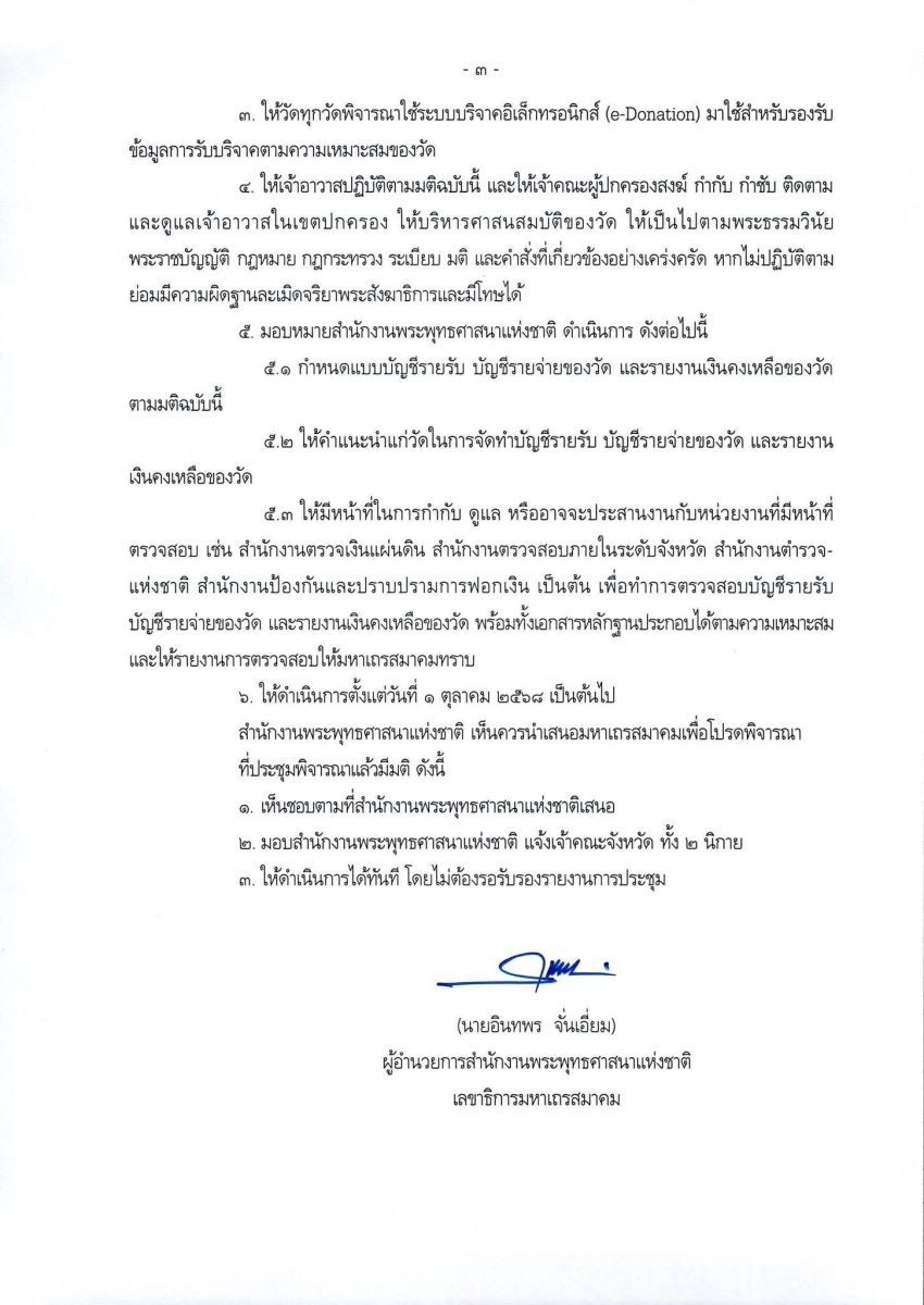๓. ให้วัดทุกวัดพิจารณาใช้ระบบบริจาคอิเล็กทรอนิกส์ (e-Donation) มาใช้สำหรับรองรับข้อมูลการรับบริจาคตามความเหมาะสมของวัด