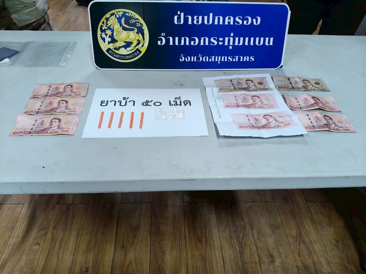 เจ้าหน้าที่ได้เข้าตรวจค้นจุดแรกบริเวณตลาดกระทุ่มแบน พบกลุ่มวัยรุ่นจำนวนมากกำลังรวมตัวกัน เมื่อกลุ่มวัยรุ่นเห็นเจ้าหน้าที่ต่างพากันแตกกระเจิงหนีไปคนละทิศละทาง แต่เจ้าหน้าที่สามารถจับกุมผู้ต้องหาได้ 7 คน พร้อมของกลางเป็น ยาบ้า 767 เม็ด