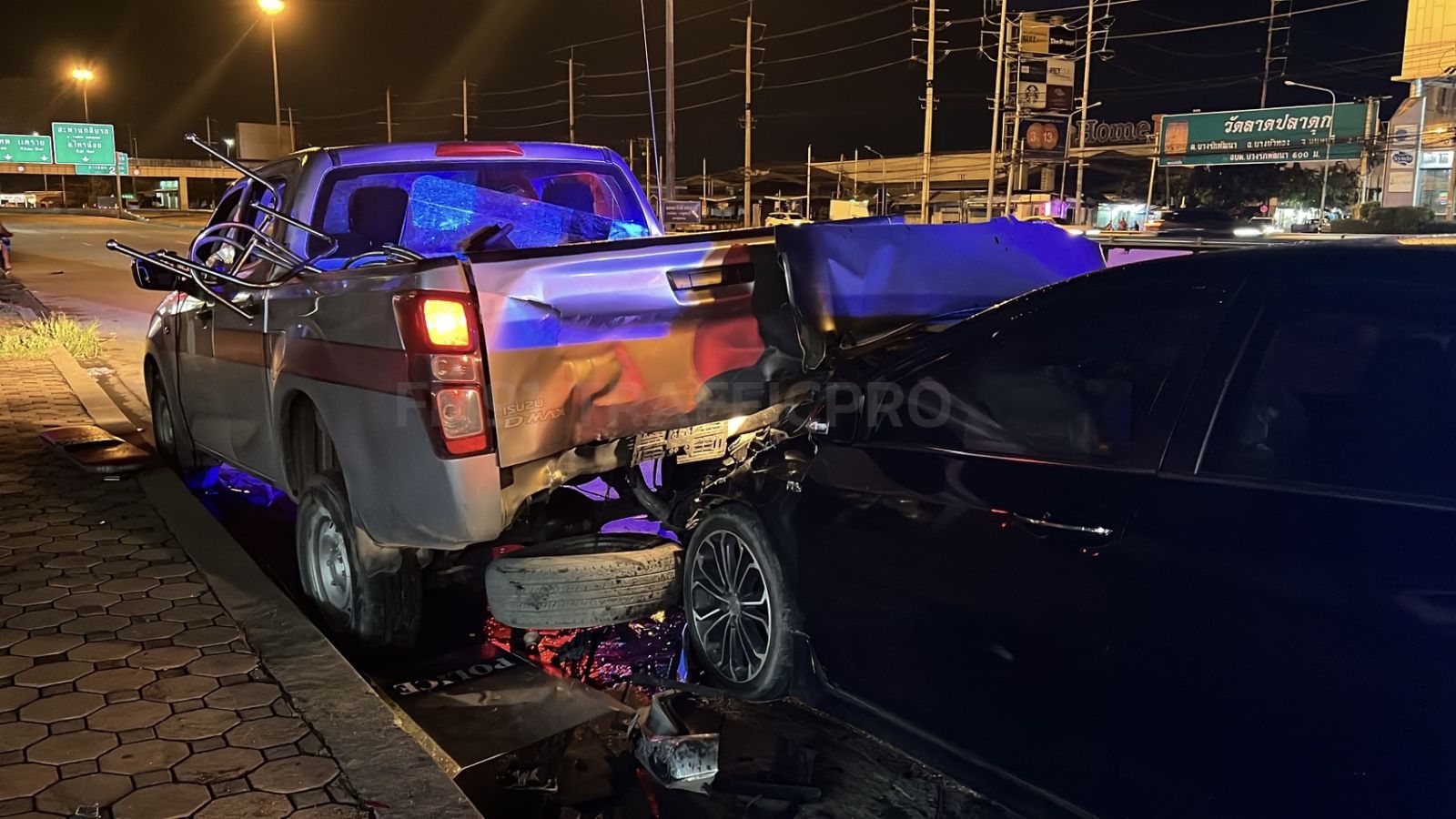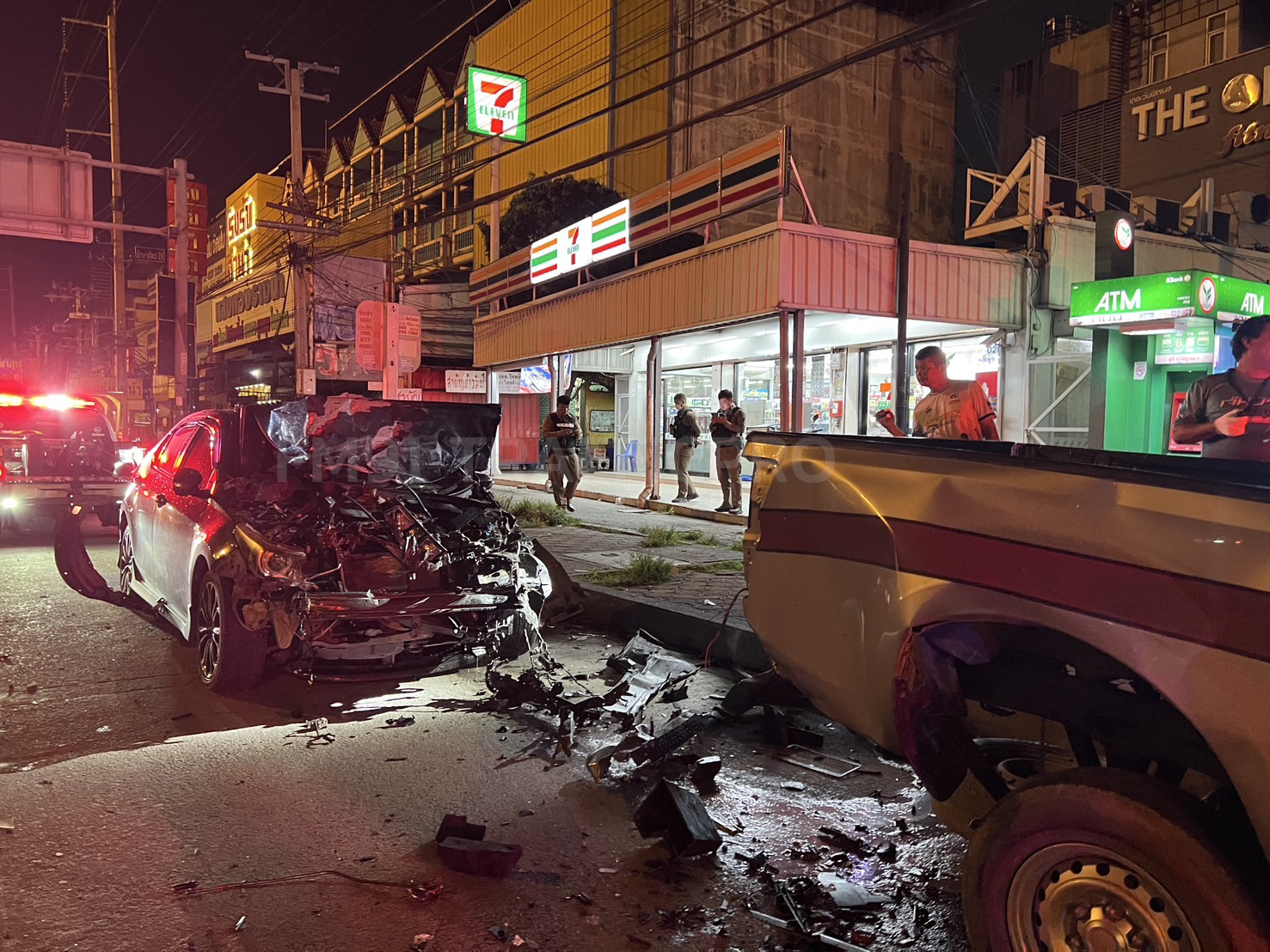 หนุ่มขับเก๋งชนท้ายรถสายตรวจพังยับ มีผู้บาดเจ็บ 2 ราย วัดแอลกอฮอล์สูง 181 มก.