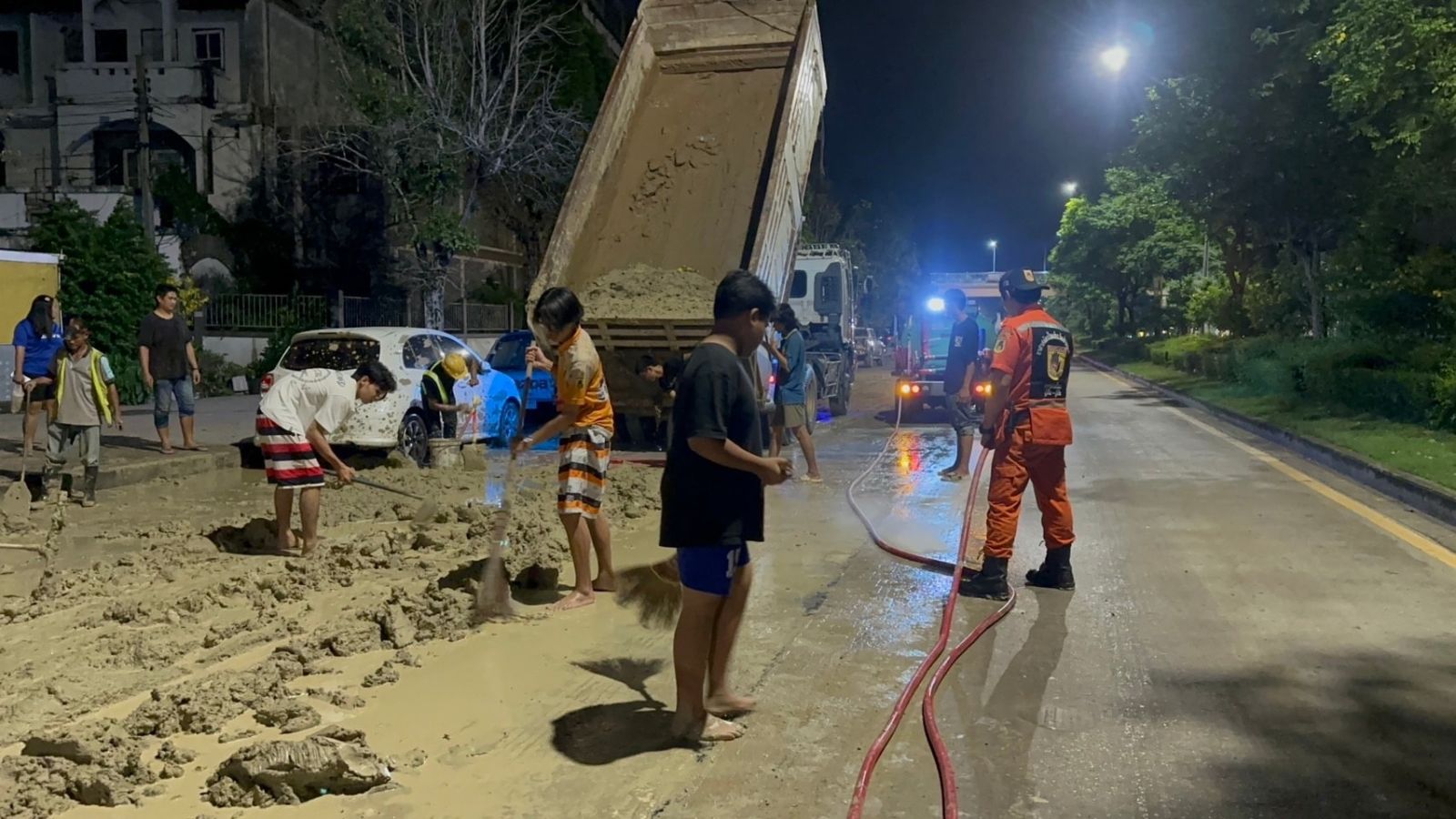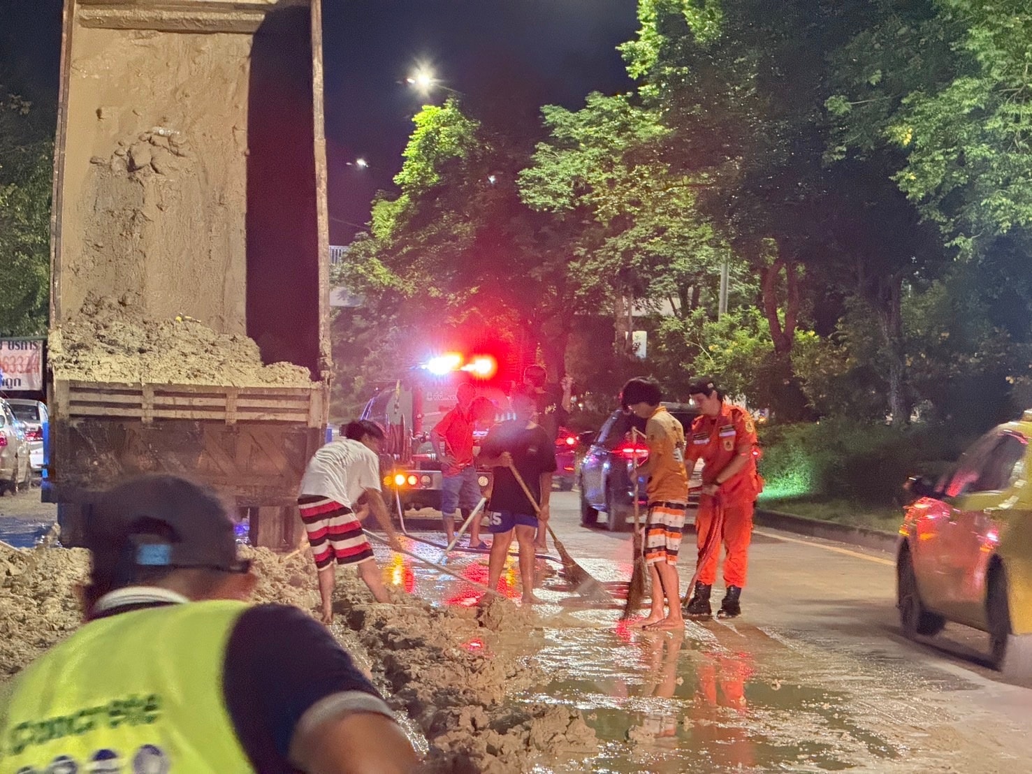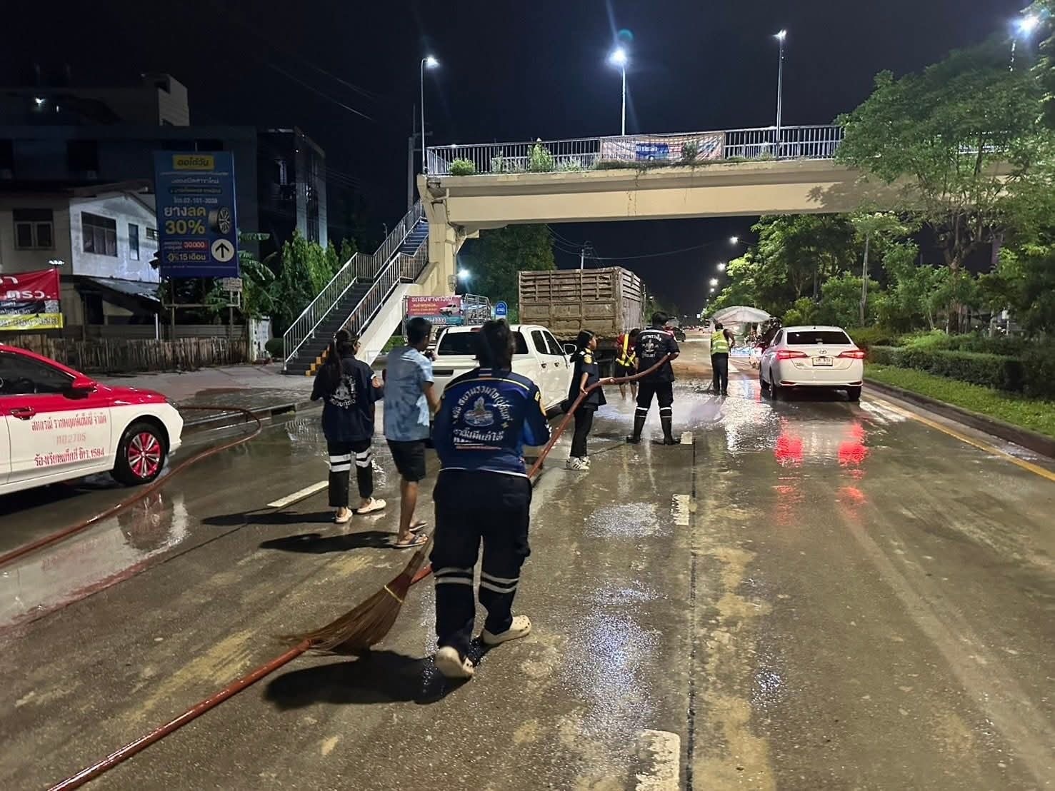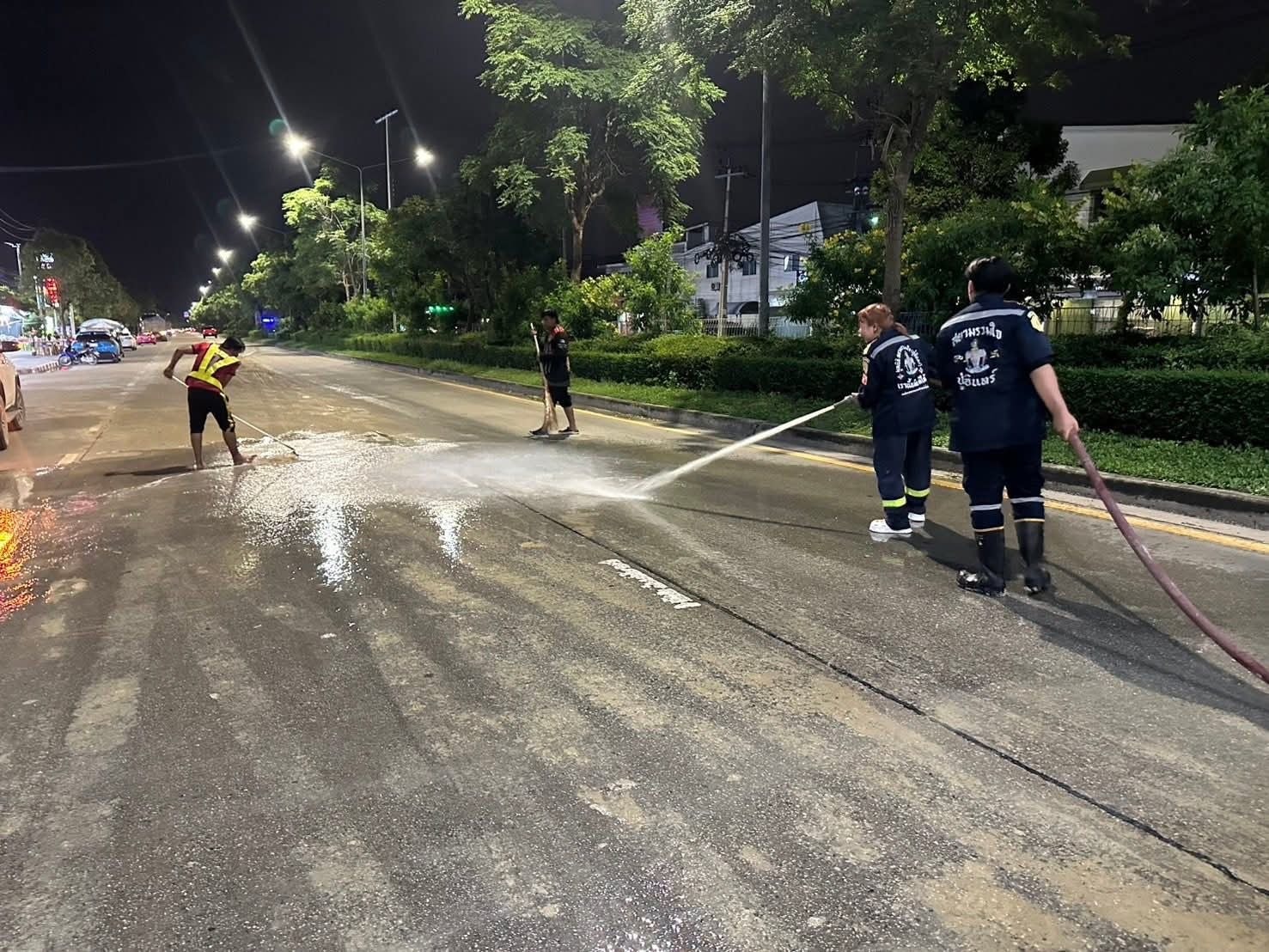 ต่อมา เมื่อเวลา 02.50 น. เจ้าหน้าที่รถน้ำเขต พร้อมด้วย อปพร.สายไหม ระดมกำลังอาสาฯ มาช่วยกันกวาดถนนและล้างดินโคลนบนถนน จนล่าสุดการจราจรบนถนนกลับมาใช้งานได้ตามปกติ