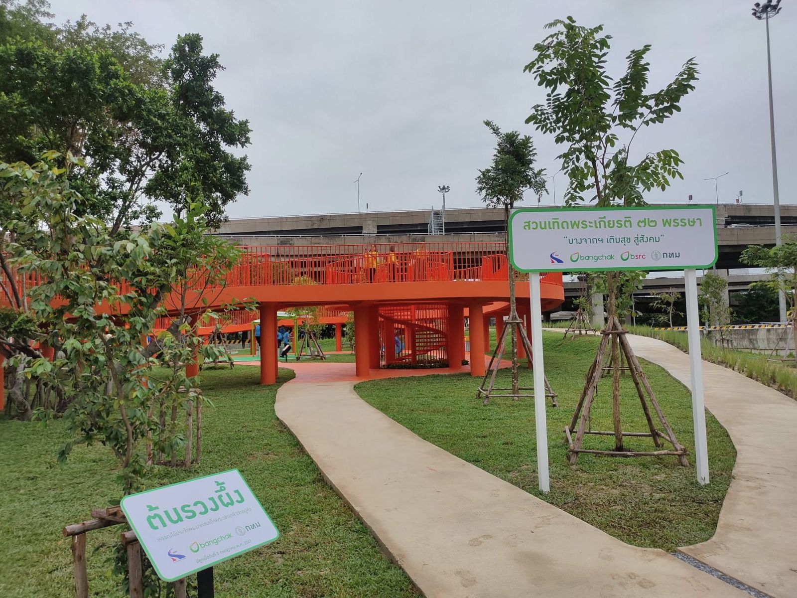 การทางพิเศษฯ เดินหน้าส่งเสริมคุณภาพชีวิตของประชาชนอย่างยั่งยืน ควบคู่ภารกิจหลักด้านการคมนาคม ด้วยการสนับสนุนโครงการ “สวนเทิดพระเกียรติ 72 พรรษา บางจากฯ เติมสุข สู่สังคม” บริเวณซอยสุขุมวิท 50 เขตคลองเตย โดยมอบพื้นที่ในเขตทางพิเศษเฉลิมมหานครให้กรุงเทพมหานครใช้ประโยชน์เพื่อการพัฒนาพื้นที่สีเขียว เปิดโอกาสให้ชุมชนได้มีแหล่งพักผ่อน ทำกิจกรรม และการเรียนรู้อย่างสร้างสรรค์
