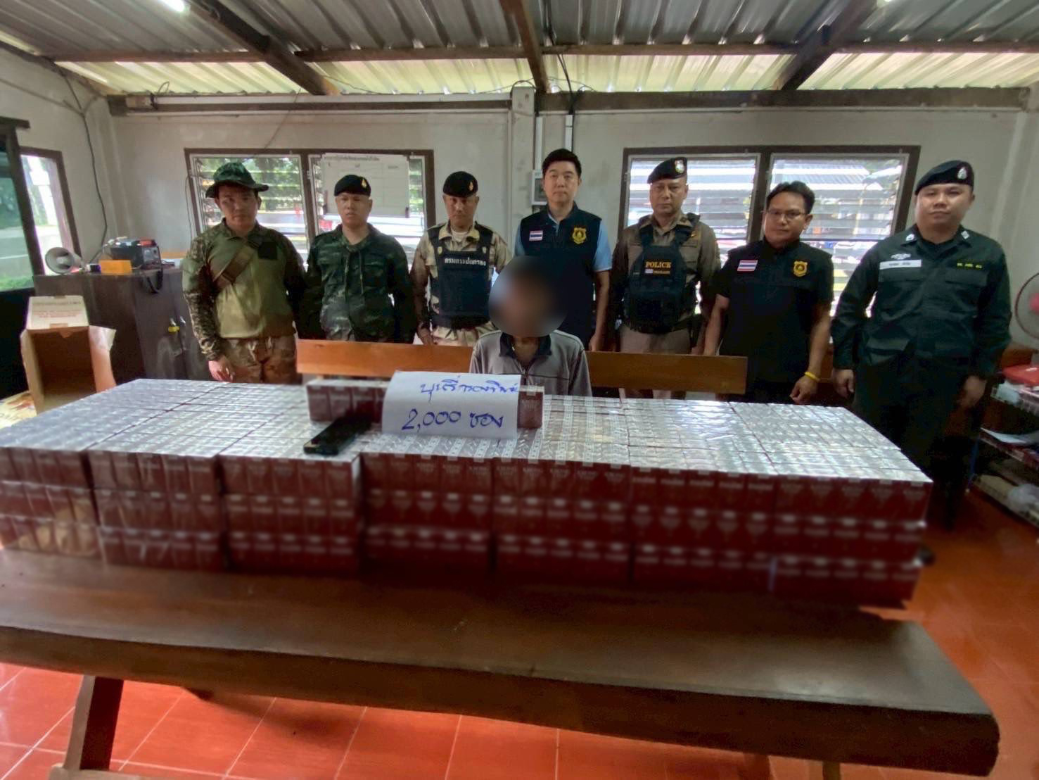 ทหาร ฉก.ลาดหญ้า กกล.สุรสีห์ รวบหนุ่มขี่รถพ่วงข้างลอบขนบุหรี่เถื่อนกลางป่า มูลค่าเปรียบเทียบปรับเกือบ 2 ล้านบาท