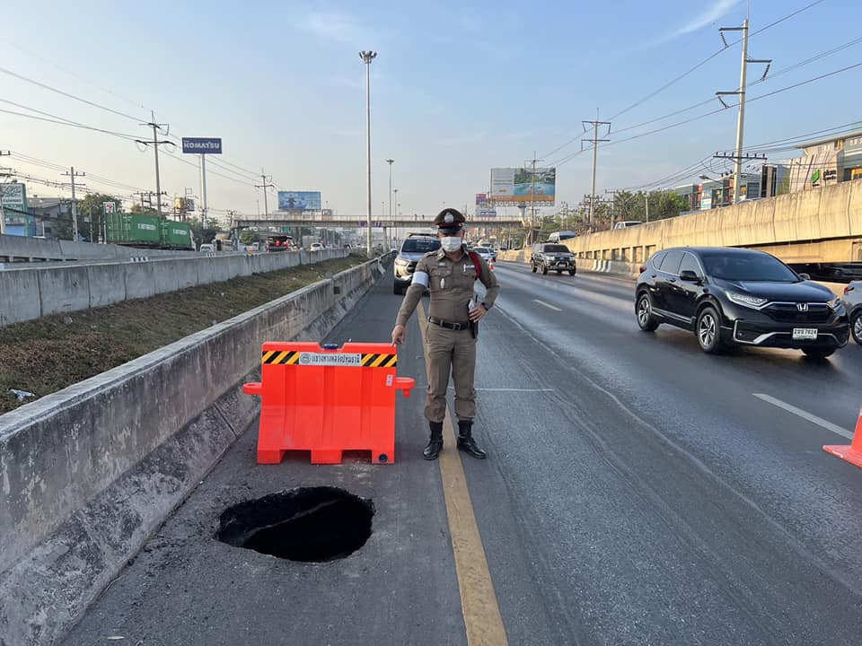 งานจราจร สภ.คลองหลวง ปทุมธานี แจ้งข่าวจราจรหลีกเลี่ยงเส้นทางพหลโยธิน ขาออก ช่วงกม.36+800 (ก่อนถึง ม.กรุงเทพ) ช่องทางด่วนขวาสุด เนื่องจากรับแจ้งเหตุการณ์ถนนชำรุด โดยได้รับแจ้งและส่งจนท.ลงพื้นที่ตรวจสอบแล้วตั้งแต่กลางดึกเมื่อคืน และเพื่อความปลอดภัยจึงได้ปิดการจราจรบริเวณดังกล่าว (ล่าสุดวันนี้) เจ้าหน้าที่แขวงทางหลวงปทุมธานีได้ตรวจจุดที่มีการทรุดตัว เบื้องต้นเป็นแนววางท่อฯ ซึ่งเสี่ยงต่อการเกิดอุบัติเหตุจึงปิดการจราจรช่องทางด่วนทั้งหมด 3 ช่องทางชั่วคราว ทางด้าน พ.ต.ท.สิงหา สว.จร.สภ.คลองหลวงได้จัดเจ้าหน้าที่เร่งระบายการจราจร