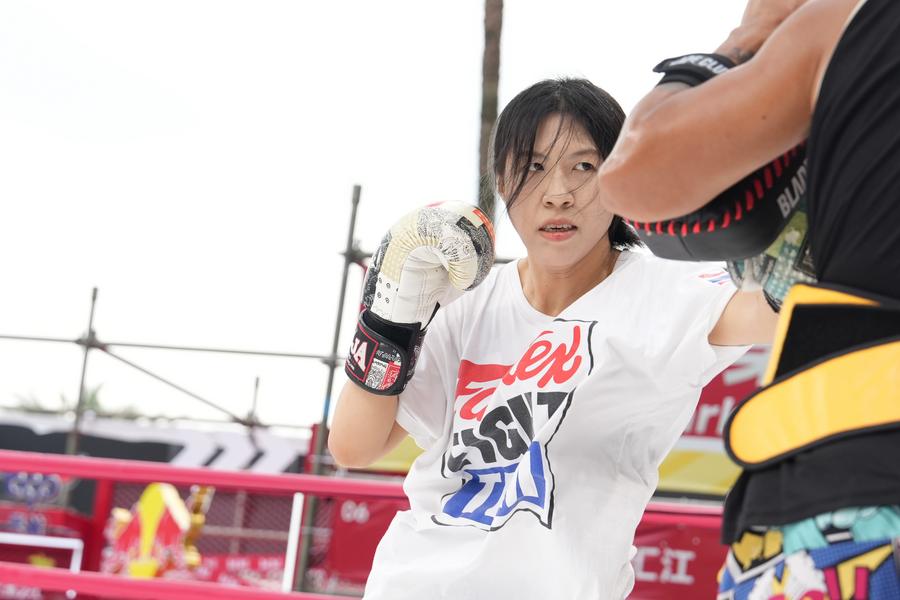 หนานหนิง, 22 ก.ค. (ซินหัว) -- ช่วงสุดสัปดาห์ที่ผ่านมา ผู้คนจำนวนไม่น้อยในเมืองหนานหนิง เขตปกครองตนเองกว่างซีจ้วงทางตอนใต้ของจีน พากันแวะชมการแสดงมวยไทยที่ออกลูกต่อยลูกเตะอย่างเมามัน บริเวณห้างสรรพสินค้าใกล้ศูนย์การประชุมและนิทรรศการนานาชาติหนานหนิง