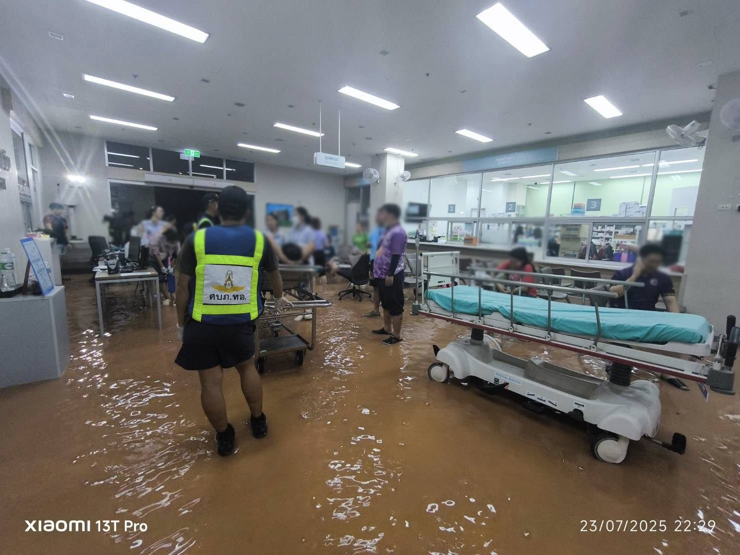 วันที่ 23 กรกฎาคม 2568 กระทรวงสาธารณสุข รับรายงาน สถานการณ์ล่าสุด รพ.น่าน พนังกั้นน้ำล้ม น้ำไหลเข้าท่วม รพ. เคลื่อนย้ายผู้ป่วยหนักใส่ท่อช่วยหายใจไป รพ.ใกล้เคียง และย้ายบริการห้องฉุกเฉิน ไปที่ ฝูงบินอิสระปฏิบัติราชการสนาม ๔๖๖ (น่าน) กองทัพอากาศ