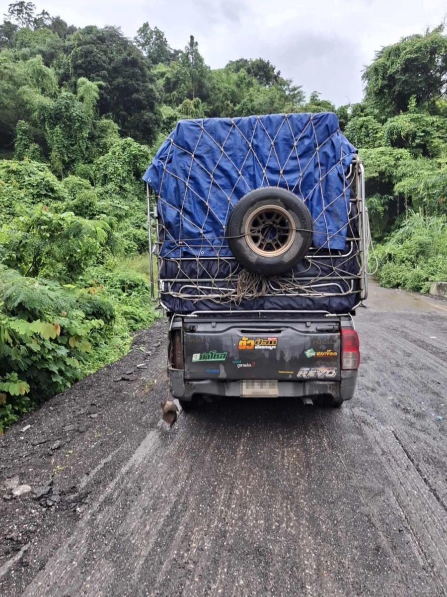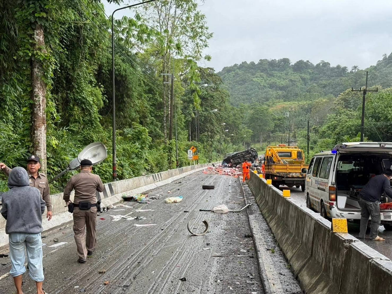 อุบัติเหตุหมู่มีผู้เสียชีวิต รถบรรทุกชนกับรถกระบะ ช่วงทางโค้งลงเขา ถนนสายทองผาภูมิ - สังขละบุรี จ.กาญจนบุรี