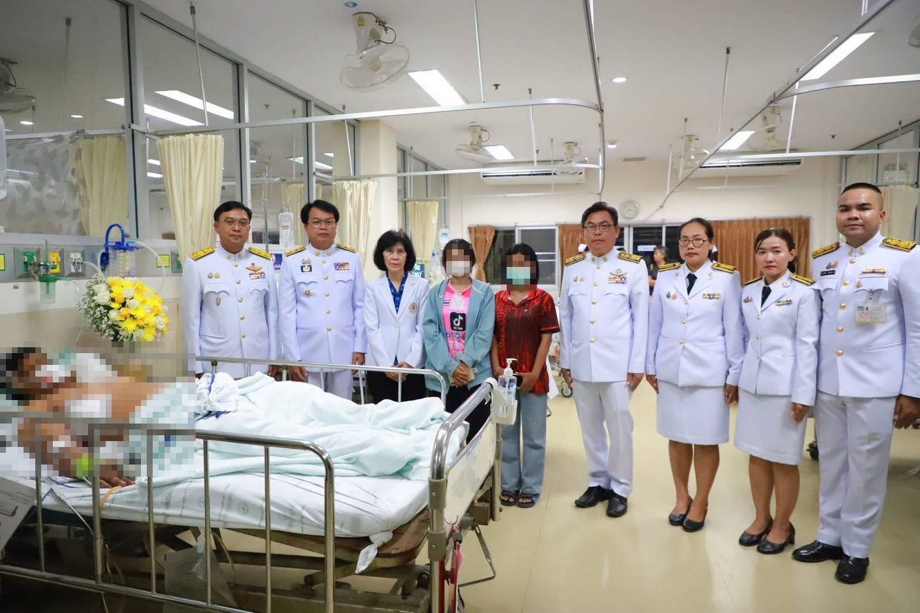 พระบาทสมเด็จพระเจ้าอยู่หัว และสมเด็จพระนางเจ้าฯ พระบรมราชินี พระราชทานสิ่งของแก่ผู้บาดเจ็บจากเหตุความไม่สงบชายแดน จ.สุรินทร์