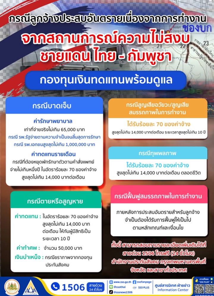 ประกันสังคมห่วงใยสถานการณ์ความไม่สงบชายแดน ไทย – กัมพูชา