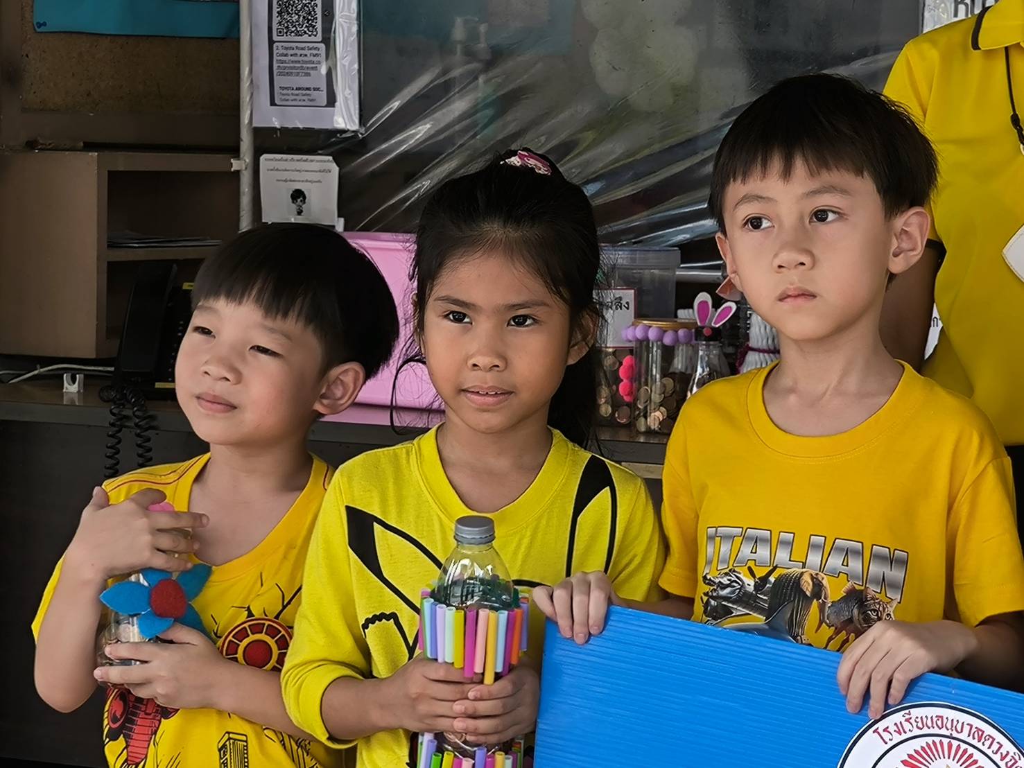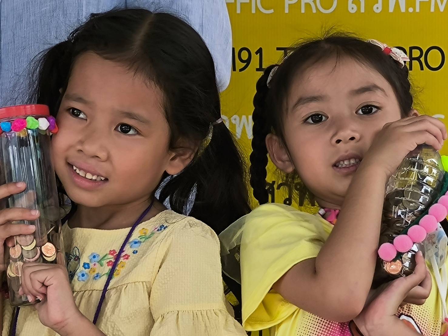 น้องลูฟี่ อายุ 5 ขวบ ชั้นอนุบาล 3 โรงเรียนอนุบาลดวงจิต บอกว่า “วันนี้ เอาเหรียญสลึงมาให้ และรู้สึกภูมิใจครับ”