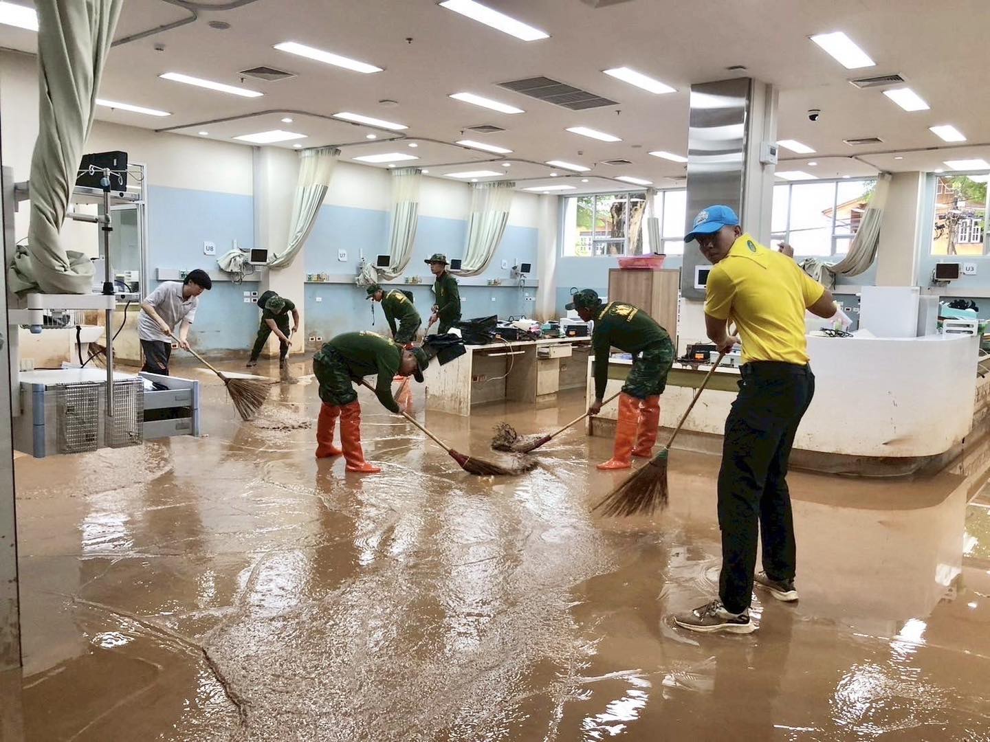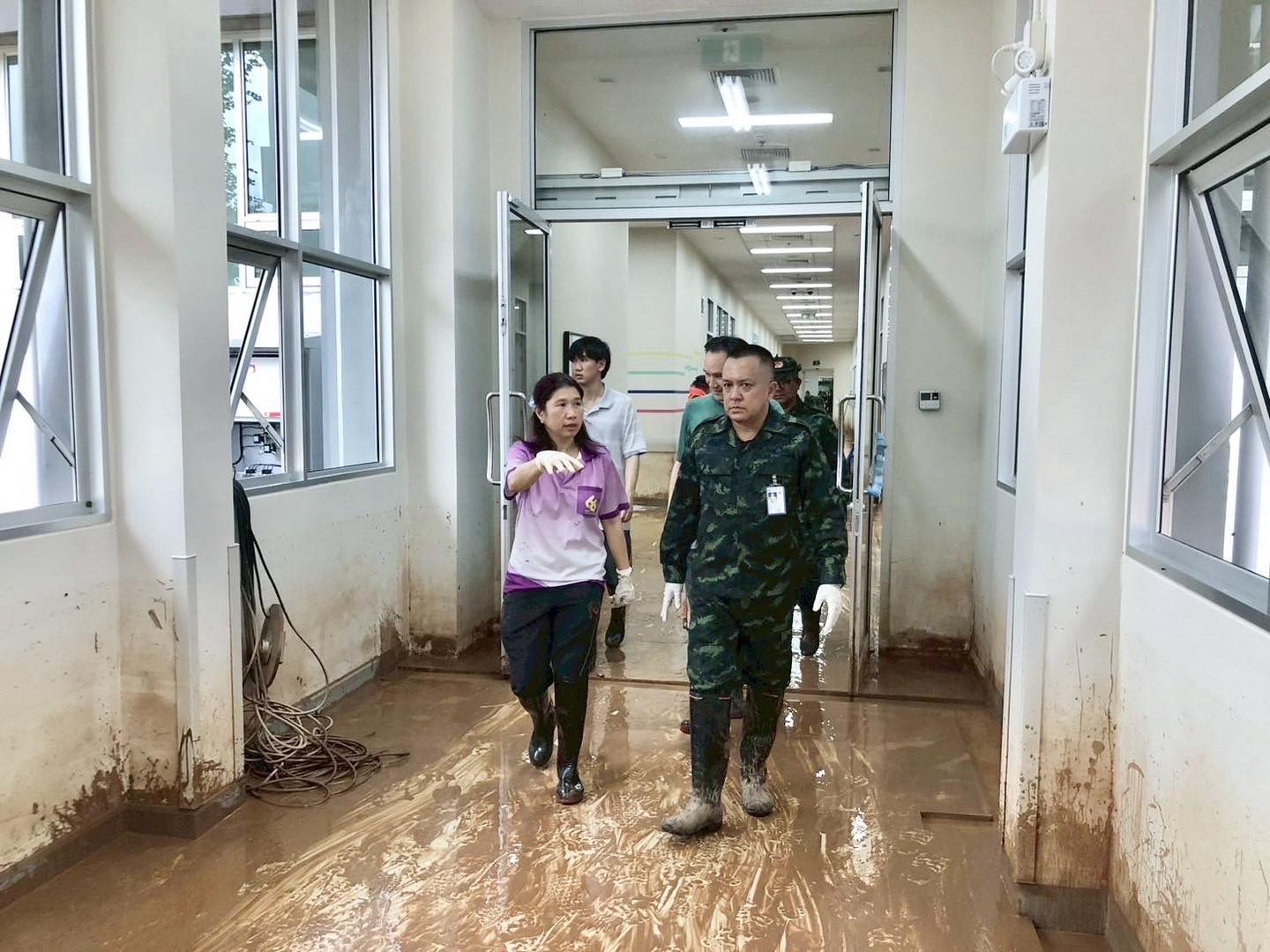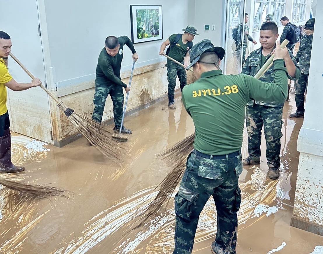 ในการนี้ ผู้บัญชาการมณฑลทหารบกที่ 38 และคณะ ได้ร่วมกิจกรรมจิตอาสาพระราชทานในการทำความสะอาดพื้นที่บริเวณโดยรอบอาคาร เพื่อเร่งฟื้นฟูให้โรงพยาบาลสามารถกลับมาเปิดให้บริการแก่ประชาชนได้โดยเร็วที่สุด