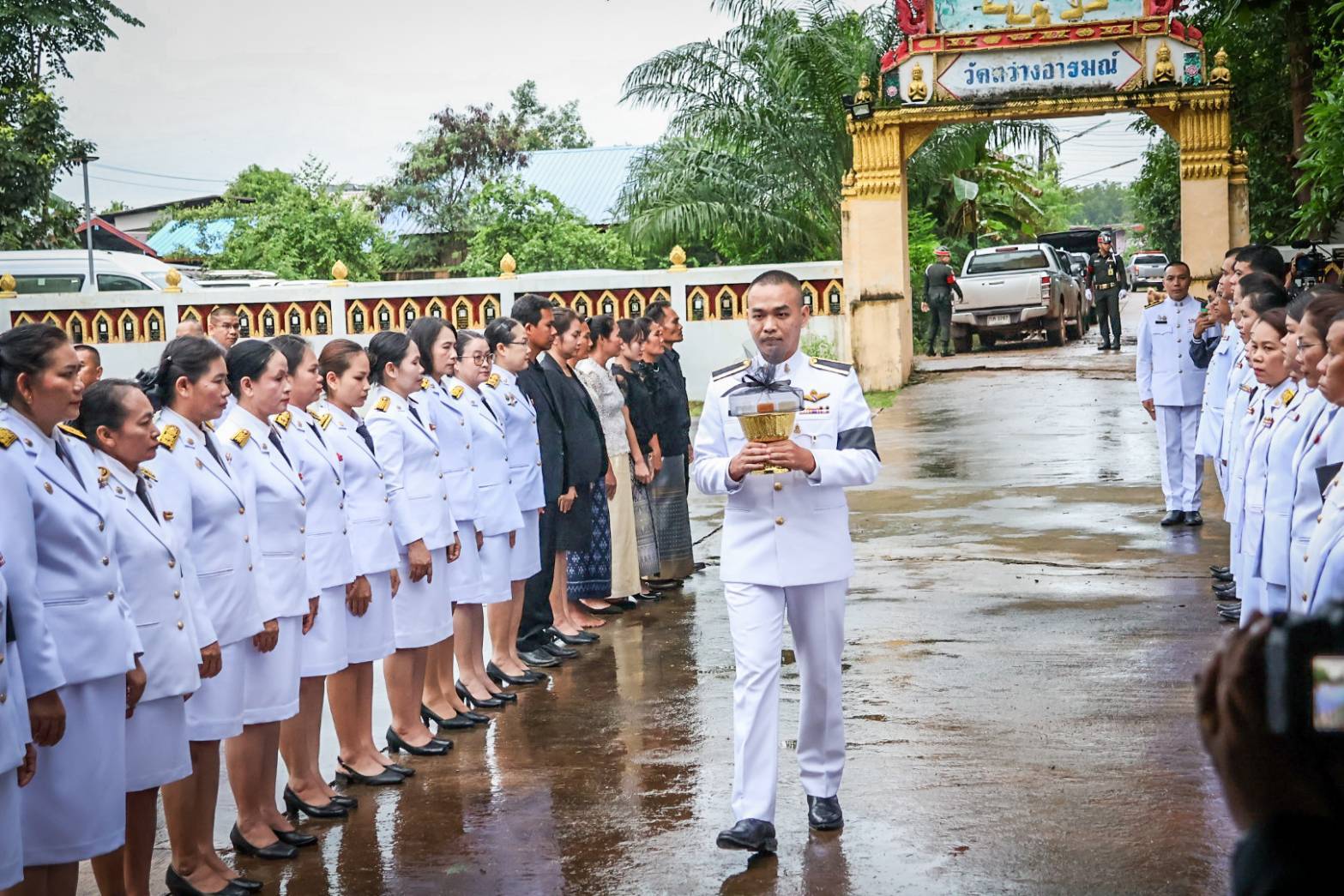 พ.อ. ศรณณัฐ นวลมณี เสธ.ร.3 เป็นผู้แทน ผบ.ร.3 พร้อมด้วยคณะนายทหารสัญญาบัตร นายทหารประทวน และทหารกองประจำการ ร่วมพิธีรับศพ ส.ต. วรัญชิต ยวงสุวรรณ ตำแหน่งสนาม พลกระสุน ร้อย.ค.หนัก. กรม ร.ฉก.ทภ.2 กำลังพลที่เสียชีวิตจากการปกป้องอธิปไตย จากเหตุการณ์ปะทะตามแนวชายแดนไทย-กัมพูชา อย่างสมเกียรติ ณ วัดสว่างอารมย์ ต.เหล่าพัฒนา อ.นาหว้า จ.นครพนม