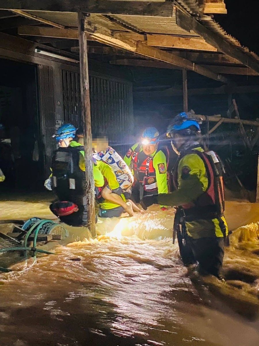 เจ้าหน้าที่กู้ภัยได้รีบยกของขึ้นที่สูงและดำเนินการช่วยเหลือผู้ประสบภัยอย่างเร่งด่วน