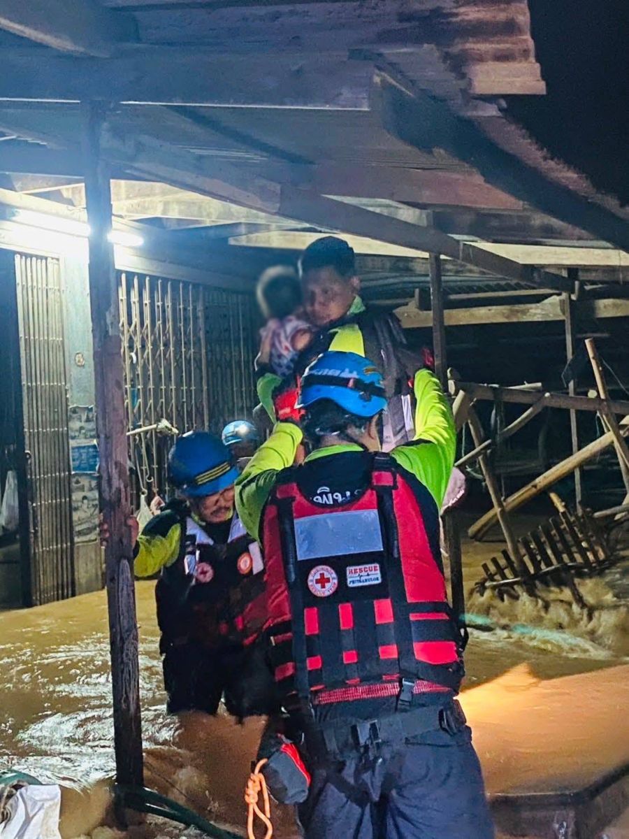 อาสาสมัครหน่วยกู้ภัยพิษณุโลก ได้ช่วยเหลือเด็กอ่อนประมาณ 7 เดือน, เด็กโต 4 ขวบ, คนชรา และผู้ใหญ่อีก 2 ท่าน อย่างปลอดภัย โดยการนำตัวออกจากพื้นที่น้ำท่วมอย่างทันทีและปลอดภัย