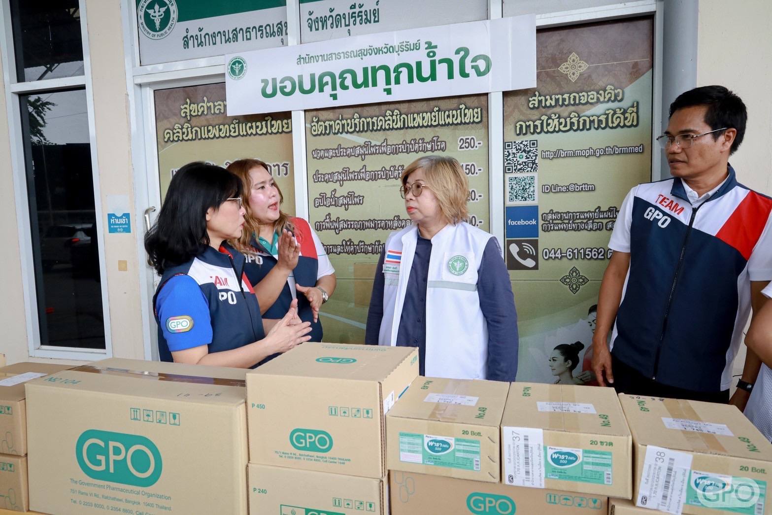 โดยได้ดำเนินการจัดส่งไปยังพื้นที่ที่ได้รับผลกระทบผ่านสำนักงานสาธารณสุขจังหวัด(สสจ.) ได้แก่สสจ.บุรีรัมย์ ศูนย์ช่วยเหลือผู้อพยพจังหวัดบุรีรัมย์ สสจ.ศรีสะเกษ สสจ.สุรินทร์ และ สสจ.อุบลราชธานี รวมกว่า 40 รายการ อาทิ ยาชุดประจำบ้าน, ยารักษากลุ่มโรคเรื้อรัง (NCD), ยาช่วยชีวิต, ยารักษาโรคอื่นๆที่จำเป็น เช่น แก้ปวดลดไข้ โรคกระเพาะ ทางเดินหายใจ รักษาแผล รวมถึงเวชภัณฑ์และกลุ่มผลิตภัณฑ์สมุนไพรอื่นๆ เป็นต้น รวมมูลค่า 5 แสนบาท