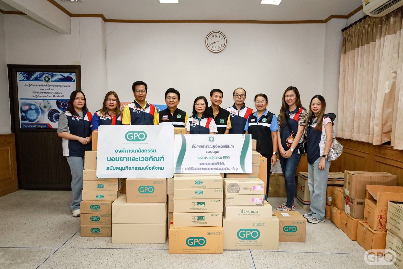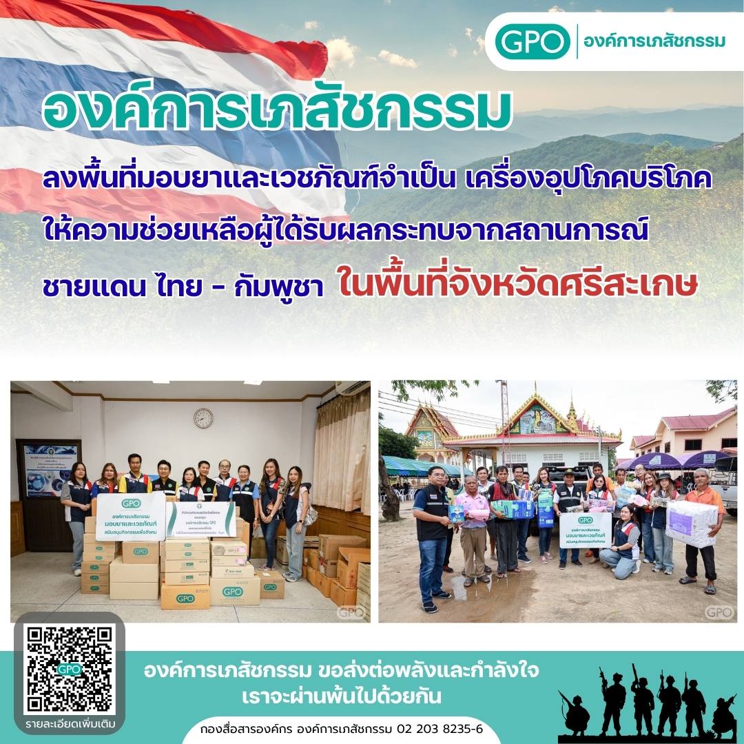 เมื่อวันที่ 28 กรกฎาคม 2567 เวลา 11.00 น. ที่สำนักงานสาธารณสุขจังหวัดศรีสะเกษ นพ.ทนง วีระแสงพงษ์ นายแพทย์สาธารณสุขจังหวัดศรีสะเกษ รับมอบยาและเวชภัณฑ์จำเป็น จากองค์การเภสัชกรรม โดยนางสุนิสา พรหมประสิทธิ์ ผู้อำนวยการกองสื่อสารองค์กร นายวิชาญ ปล้องไหม ผู้อำนวยการกองพัฒนาองค์กรเพื่อความยั่งยืน เพื่อนำไปช่วยเหลือประชาชนที่ได้รับผลกระทบจากสถานการณ์ชายแดนไทย-กัมพูชา ในพื้นที่จังหวัดศรีสะเกษ รวมกว่า 40 รายการ อาทิ ยาชุดประจำบ้าน ,ยารักษากลุ่มโรคเรื้อรัง (NCD),ยาช่วยชีวิต ,ยารักษาโรคอื่นๆที่จำเป็น