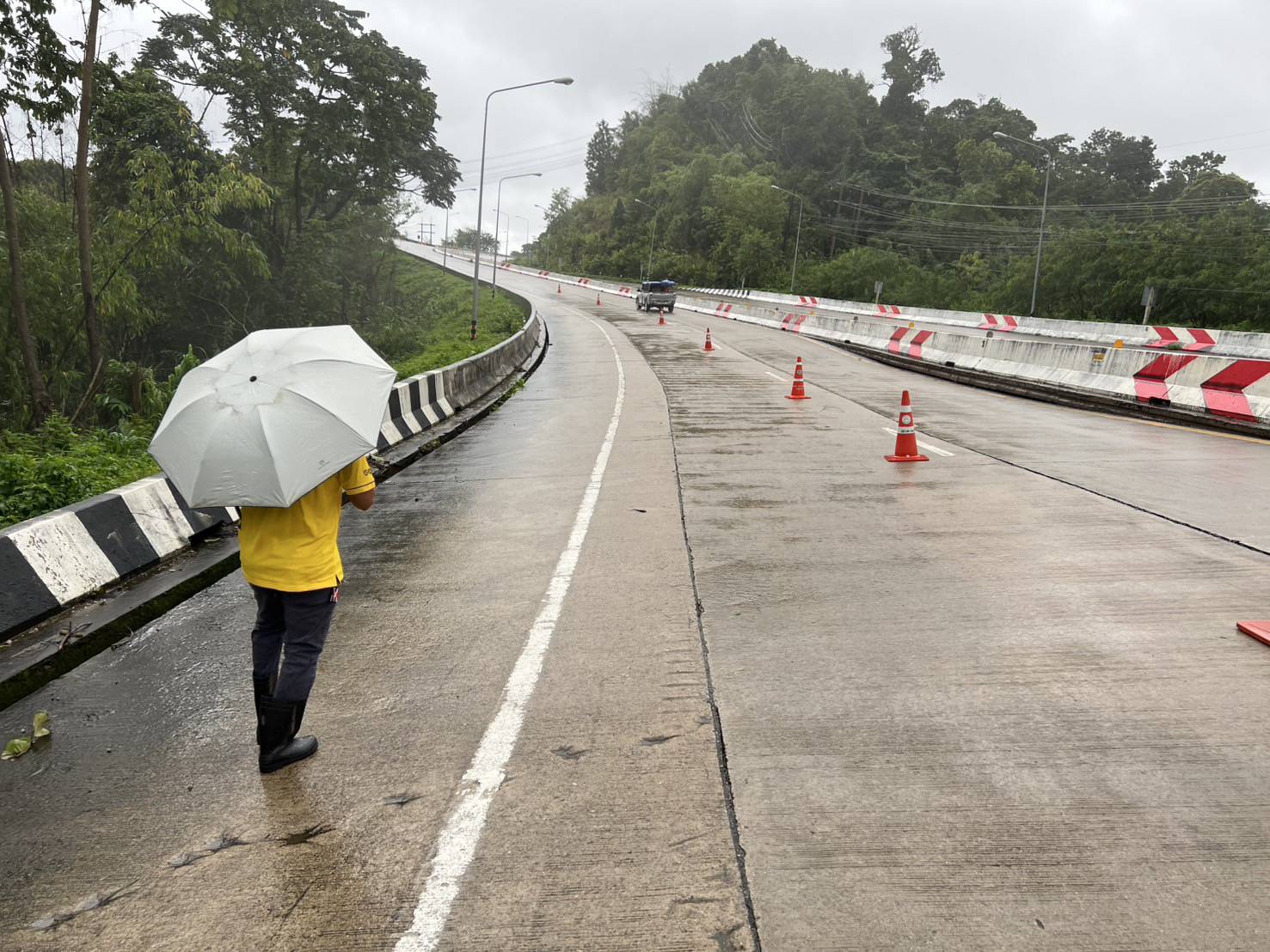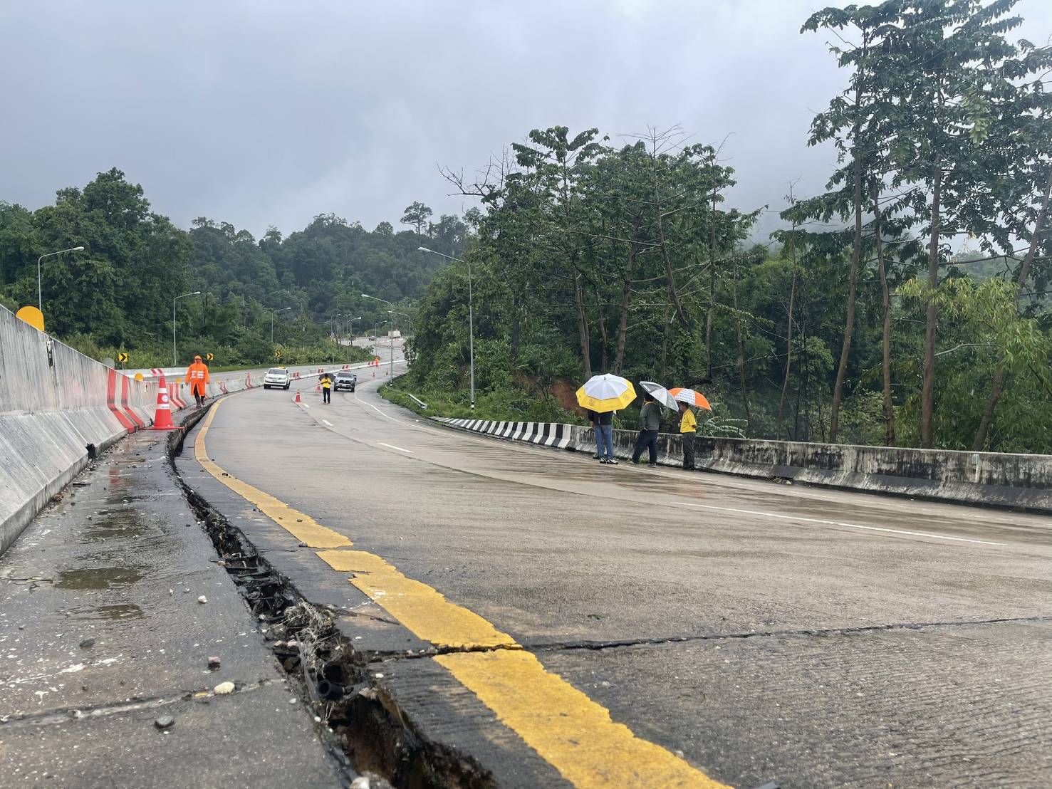 โดยเจ้าหน้าที่หมวดทางหลวงอาวุโสแม่สอด ได้ติดตั้งป้ายเตือนและกรวยยาง เพื่อเบี่ยงการจราจรให้รถวิ่งสวนทาง