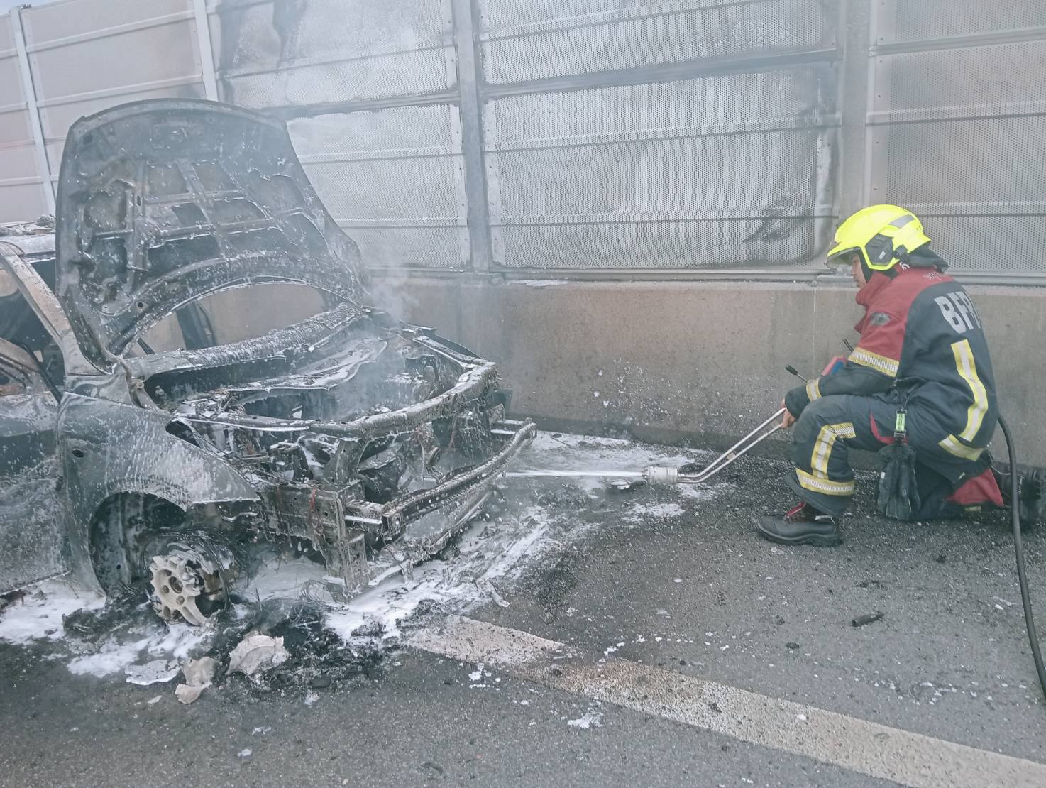 เวลา 17.31 น. ขณะนี้เพลิงสงบ ลักษณะที่เกิดเหตุเป็นรถยนต์นั่งส่วนบุคคล ชนิดเก๋ง รถใช้น้ำมันเบนซินเป็นเชื้อเพลิง รายละเอียดเพิ่มเติมอยู่ระหว่างการตรวจสอบ