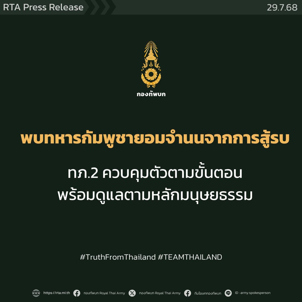Royal Thai Army Public Relations Center, Army Spokesperson Team, 29 July 2025